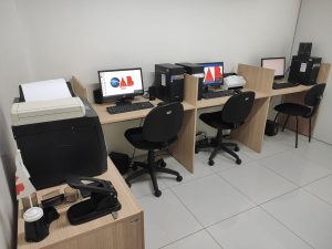 A Sala da OAB está equipada com mesas e cadeiras para atendimento, computadores e impressoras, condicionadores de ar e materiais para escritório para que a Advocacia local possa atender seus constituintes.