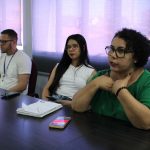 Estiveram presentes na reunião: Advogada Valdirene Ribeiro, secretária-geral da Comissão; Fernando Castro, coordenador do NTI da OAB-PI; Graciliano Martins, desenvolvedor do NTI da OAB-PI; Lindemberg, coordenador do setor de salas da OAB-PI; Lívia Mendes, responsável pelos agendamentos da OAB-PI; Bruno Nascimento, coordenador de NTI da SEJUS; Paulo Rocha, gerente da SEJUS; Coronel Sousa Filho, Subsecretário da SEJUS e Aliomar Teixeira, diretor-adjunto da Diretoria de Unidade de Administração Penitenciária (Duap).