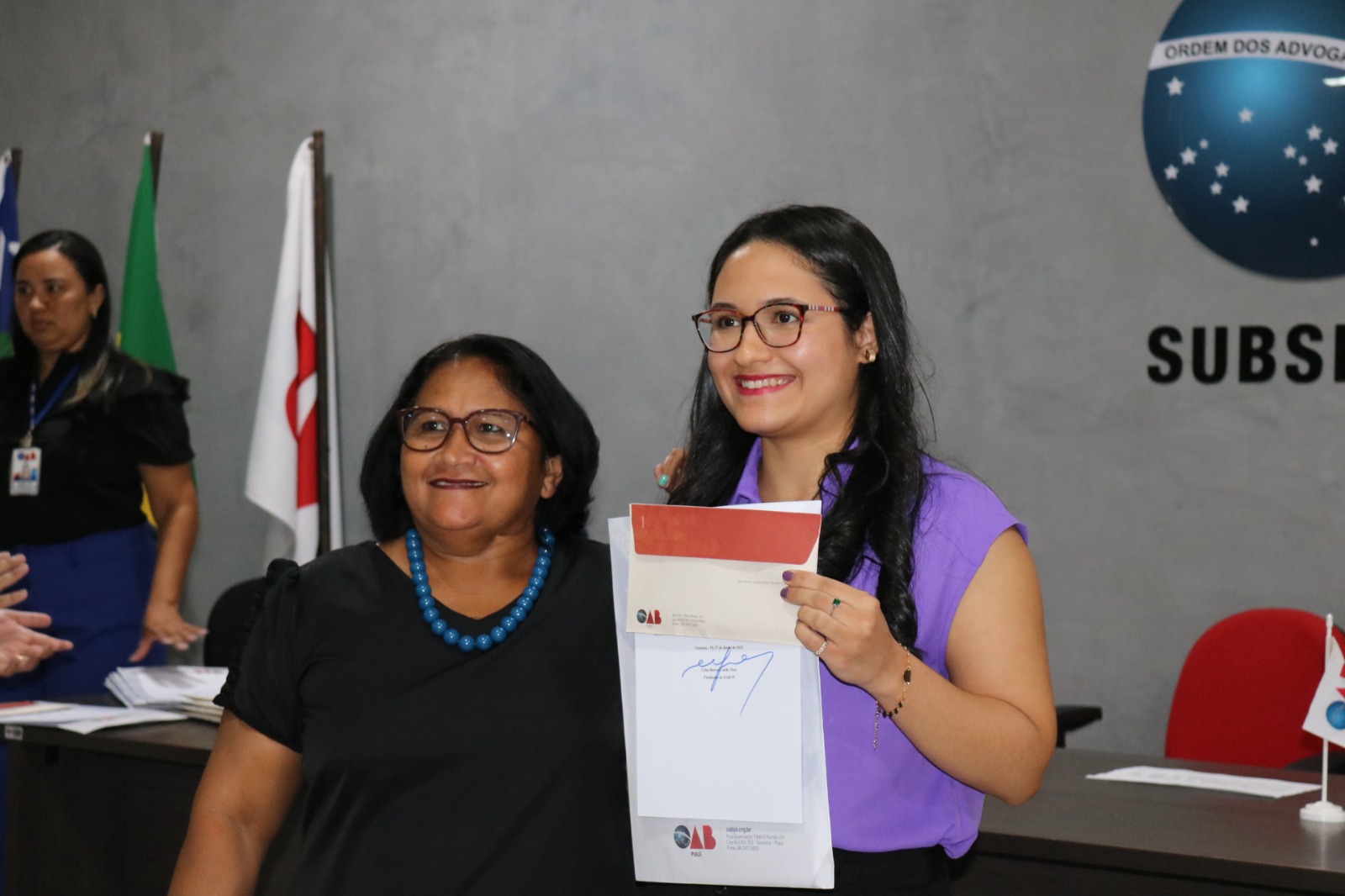 Ainda estiveram presentes no Compromisso, entre outras autoridades jurídicas, o Delegado da CAAPI da Subseção de Floriano, o Advogado Eduardo Salim; ex-presidentes da Subseção de Floriano; a Advogada Michele Kalume e a Vice-presidente da Comissão de Direito Previdenciário da OAB-PI, a Advogada Alice Belli.