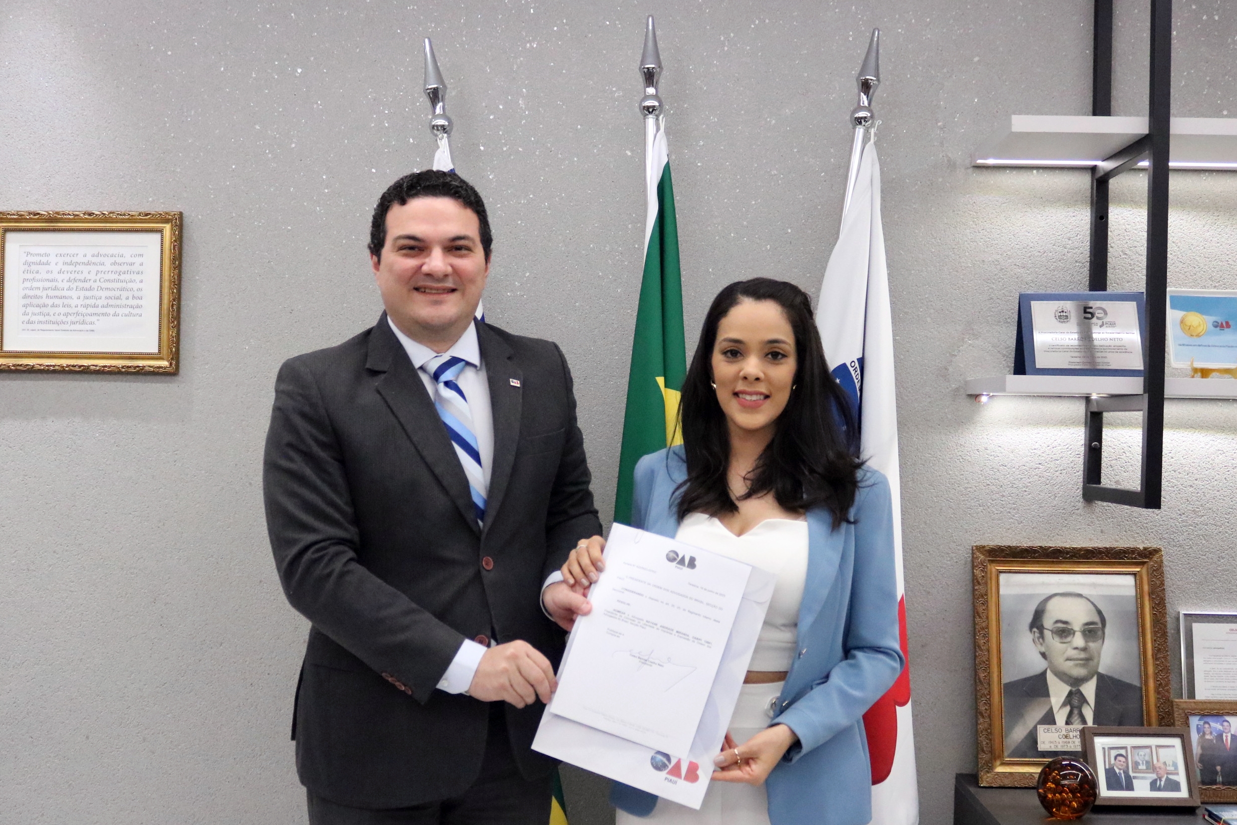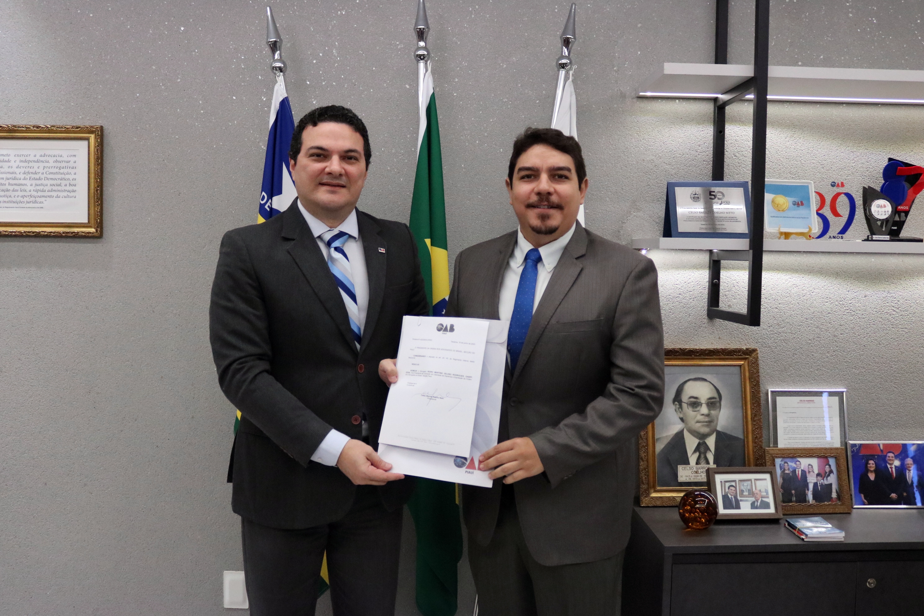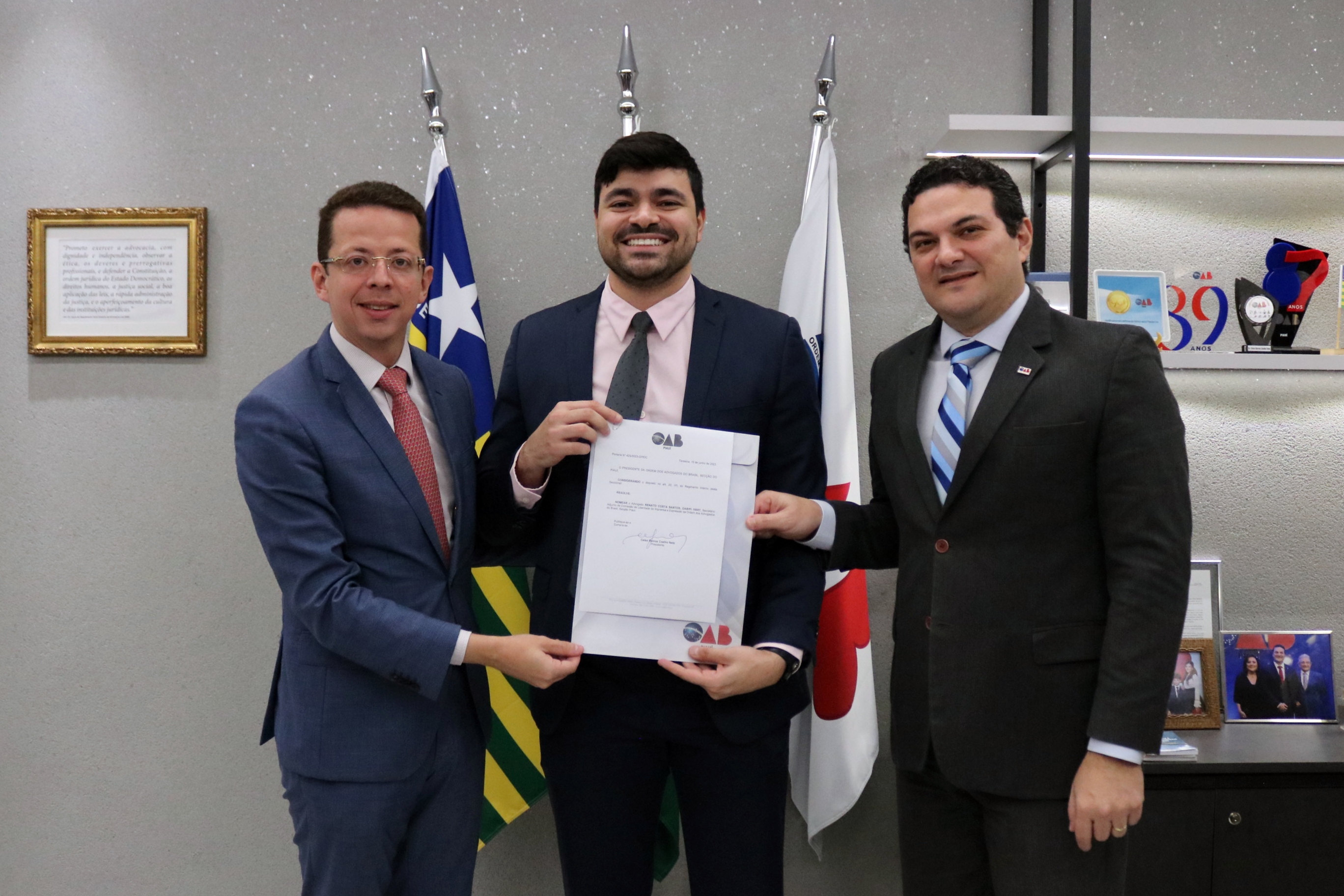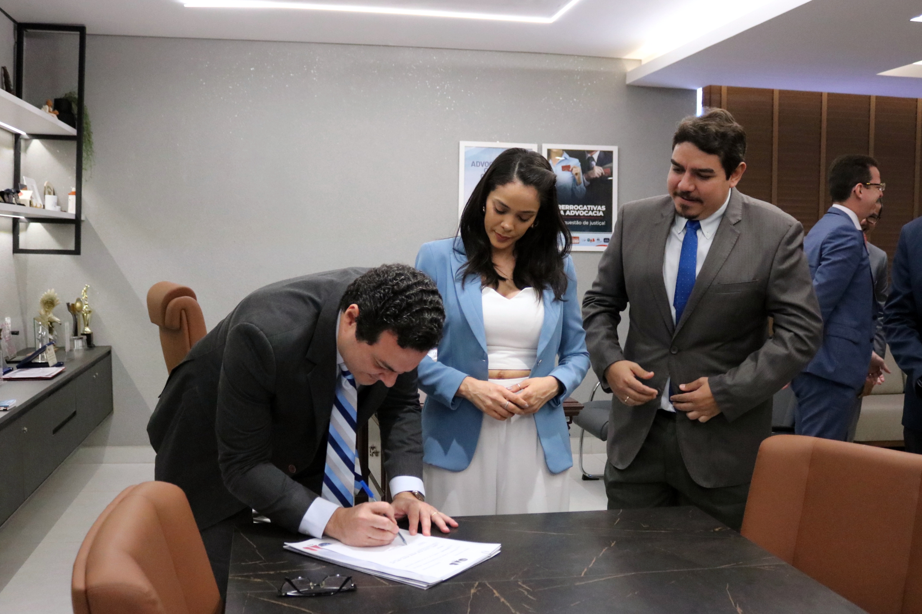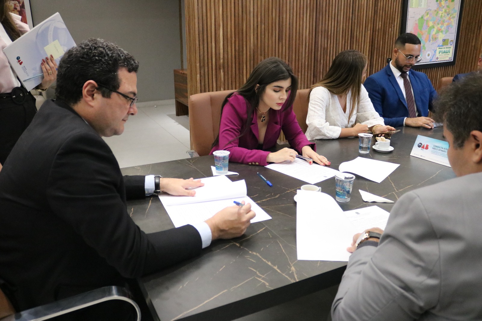 Estiveram presentes na assinatura do termo: o diretor-tesoureiro, Marcus Vinícius Nogueira, o Presidente e a vice-presidente da Comissão de Direito Previdenciário da OAB-PI, Victor Hugo Leal da Silva e Alice Belli; o Presidente da Comissão de Defesa e Valorização dos Honorários, Einstein Sepúlveda, o gerente executivo do INSS no Piauí, William Machado, o chefe de benefício do INSS, Tyago Rodrigues da Silva e o chefe de atendimento da instituição, Edmilson de Sousa Saraiva.