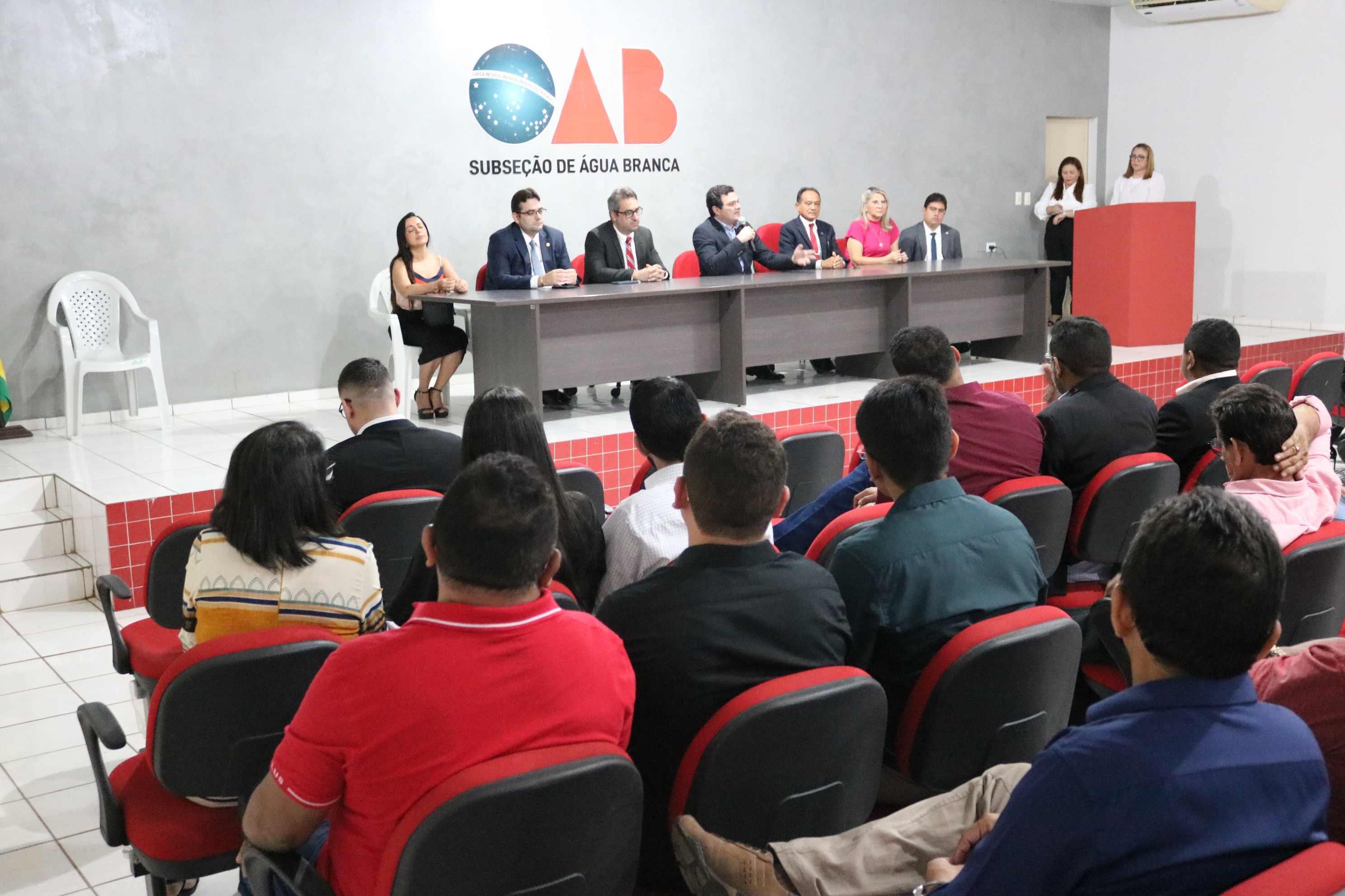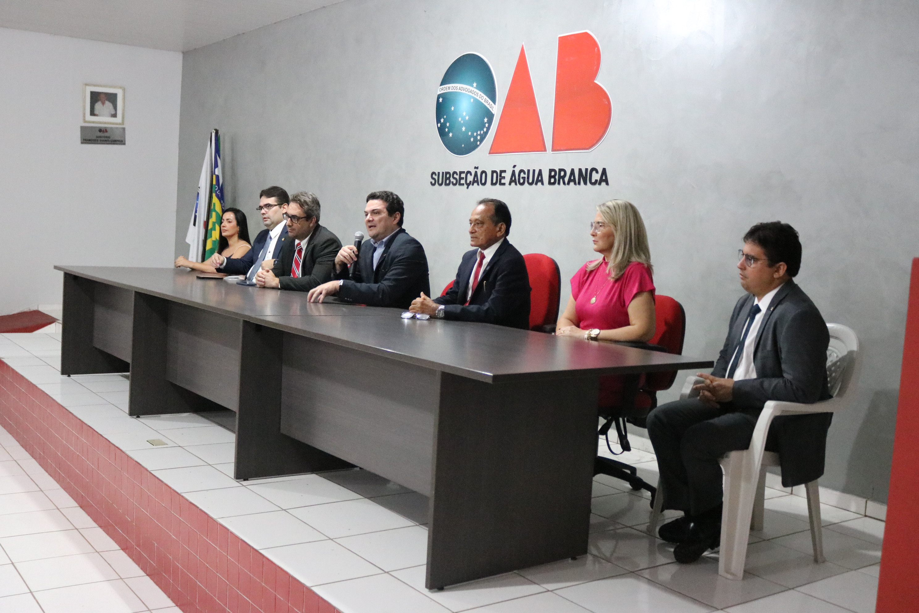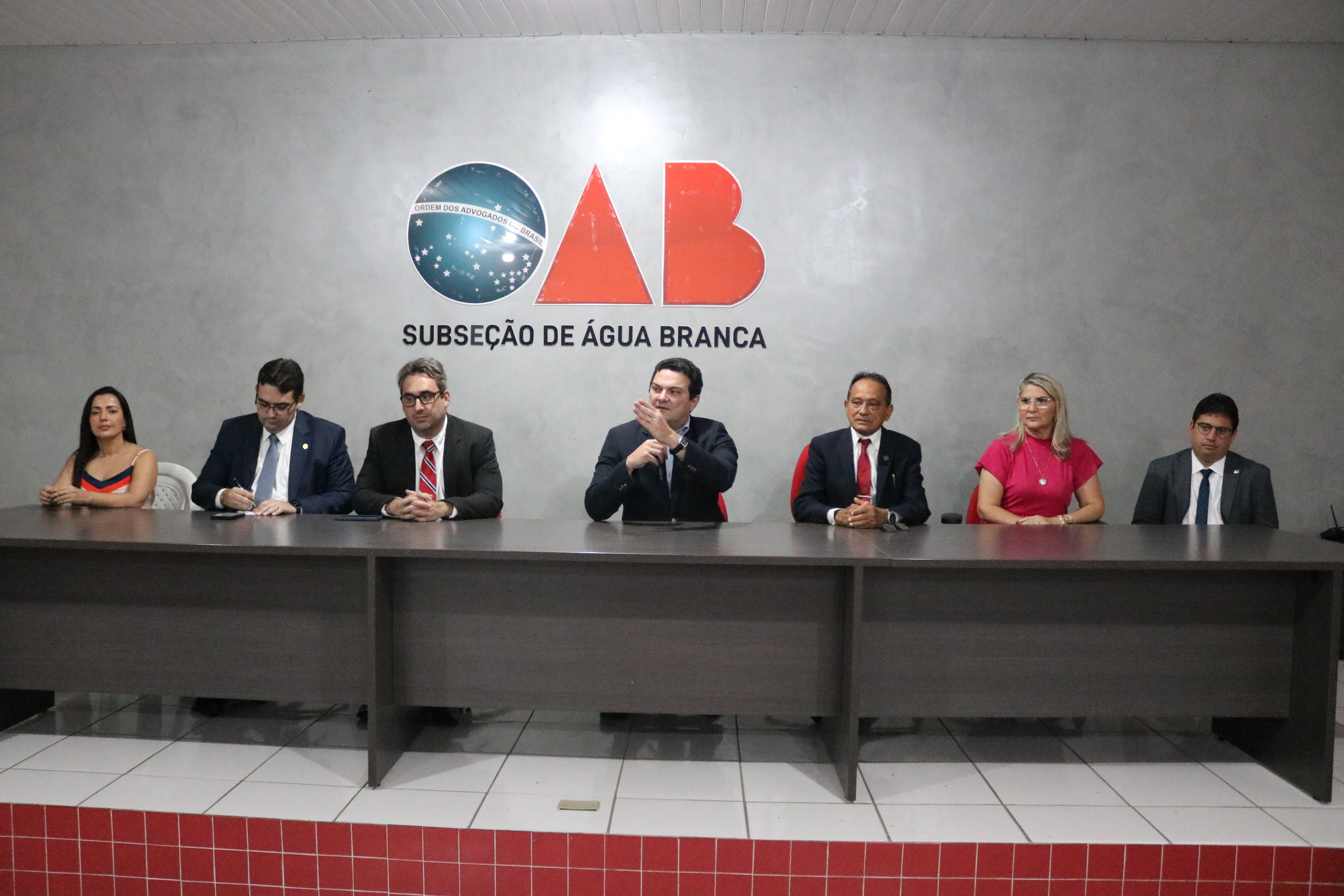 Compuseram o dispositivo de honra da solenidade o Presidente da OAB-PI, Celso Barros, o diretor-tesoureiro da OAB-PI, Marcus Vinícius Nogueira, a vice-presidente da CAAPI, Dalva Fernandes, o Presidente da Subseção de Água Branca, Antônio Mesquita, a Conselheira Seccional Beatriz Sousa, o Conselheiro Federal da OAB, Carlos Junior, e o Juiz José Eduardo.