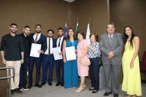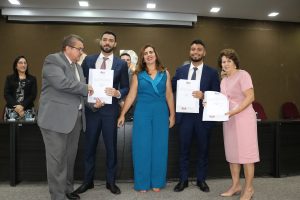 Ana Francisca Lustosa Pires, de 54 anos e os dois filhos, Lucas Lustosa, de 24 e Mateus Lustosa, de 25, protagonizaram um momento histórico na Ordem dos Advogados do Brasil (OAB), Seccional Piauí. Os três prestaram a solenidade de compromisso e receberam as Carteiras Profissionais da OAB, simultaneamente, nesta quarta-feira (22/03), no Auditório da Seccional.