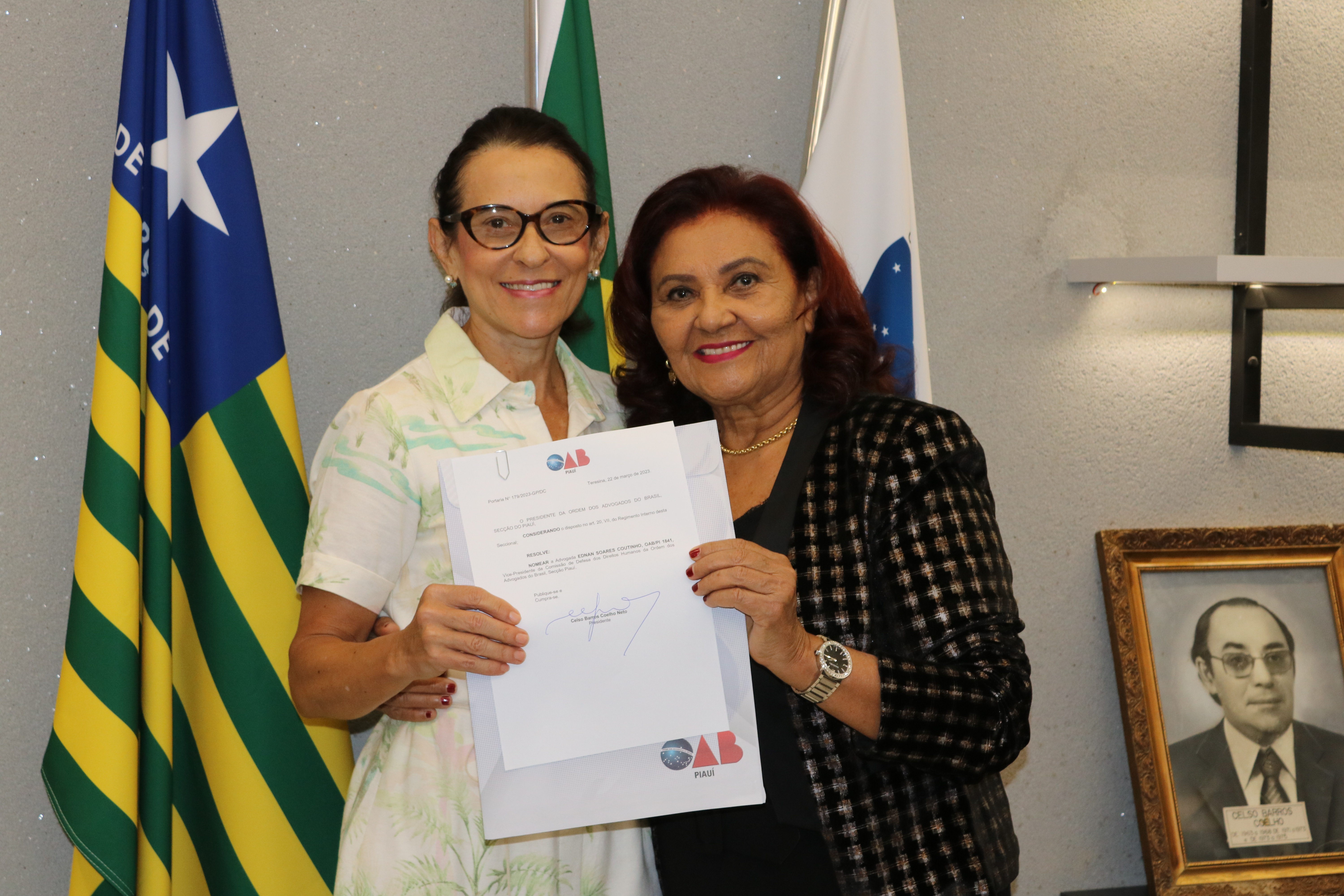 O Presidente da Ordem dos Advogados do Brasil, Seccional Piauí, Celso Barros Coelho Neto, deu posse à Advogada Ednan Soares Coutinho como Vice-Presidente da Comissão de Direitos Humanos, na manhã desta quarta-feira (22).