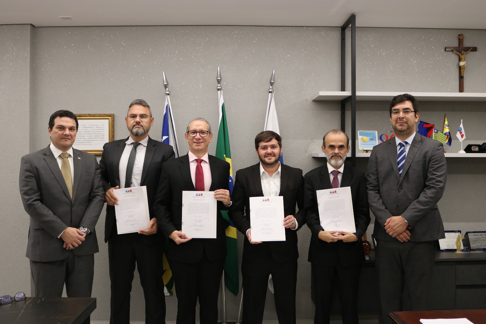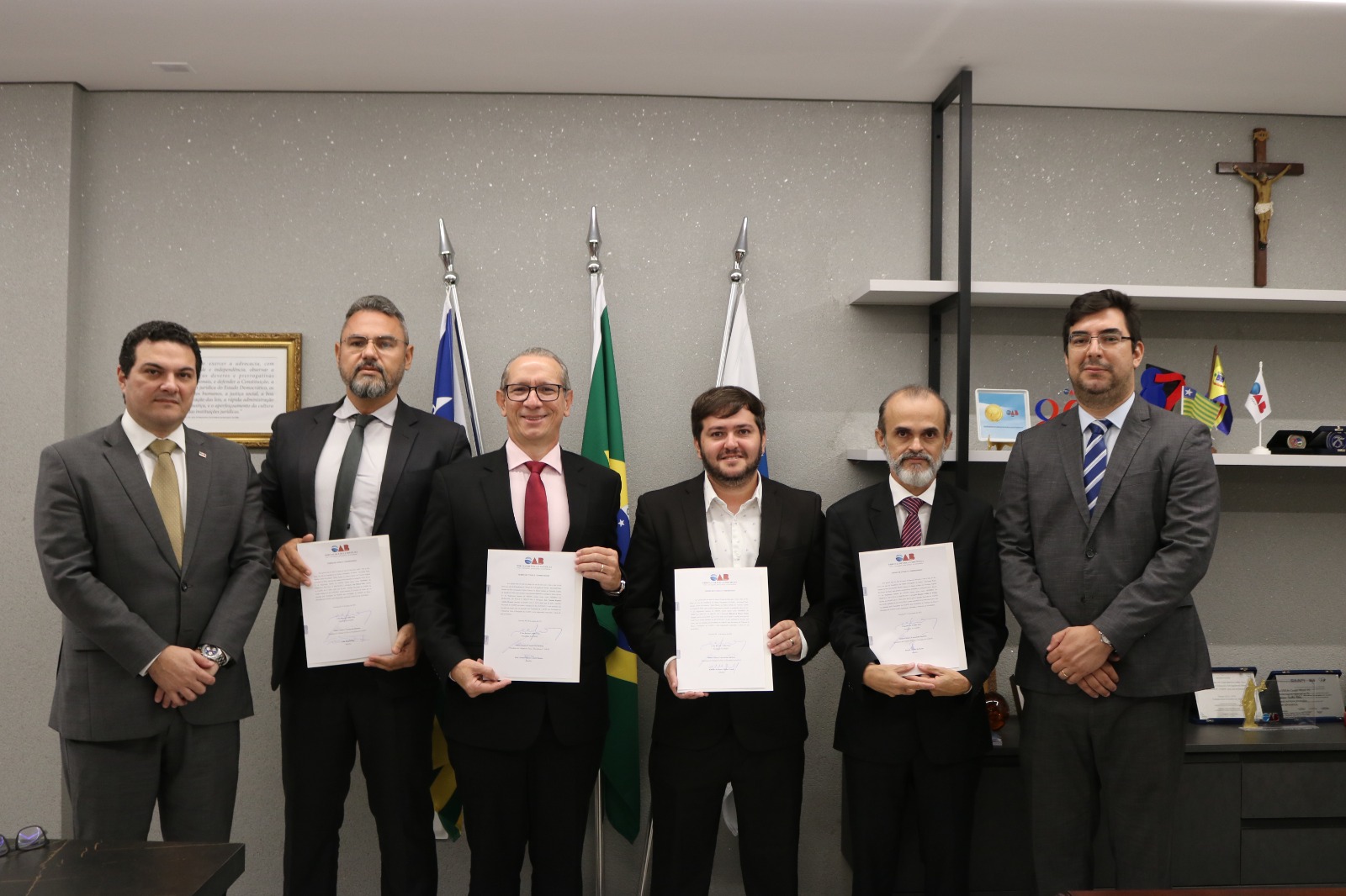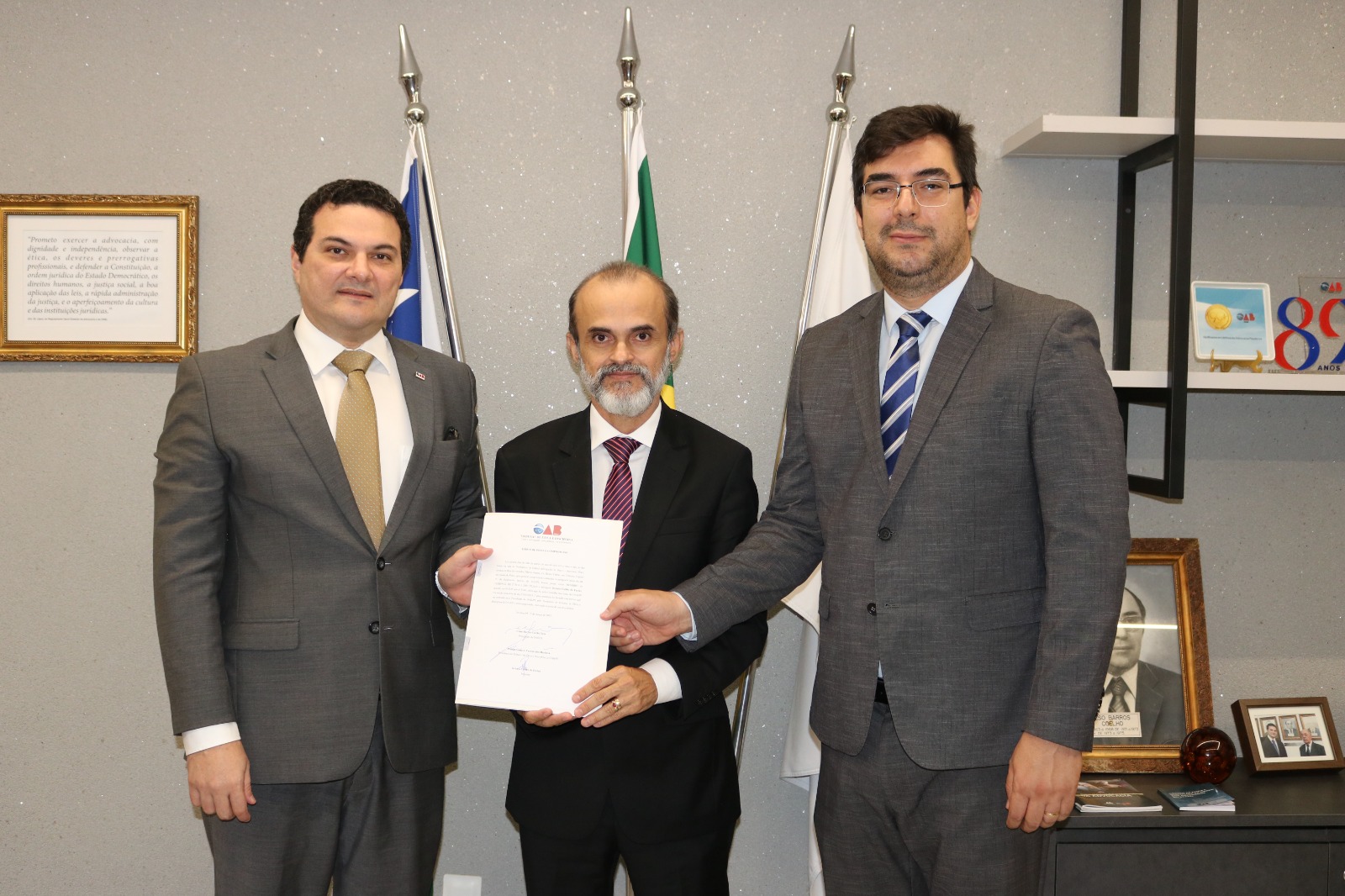 O Presidente da Ordem dos Advogados do Brasil (OAB), Seccional Piauí, Celso Barros Coelho Neto, e o Presidente do Tribunal de Ética e Disciplina (TED), Milton Gustavo, empossaram nesta quarta-feira (15/03) os Advogados José Corsino Raposo Castelo Branco, Renato Coêlho de Farias, Luiz Moura Neto e Rômulo de Moura Freitas Gurgel como membros para o Tribunal de Ética e Disciplina da OAB-PI.