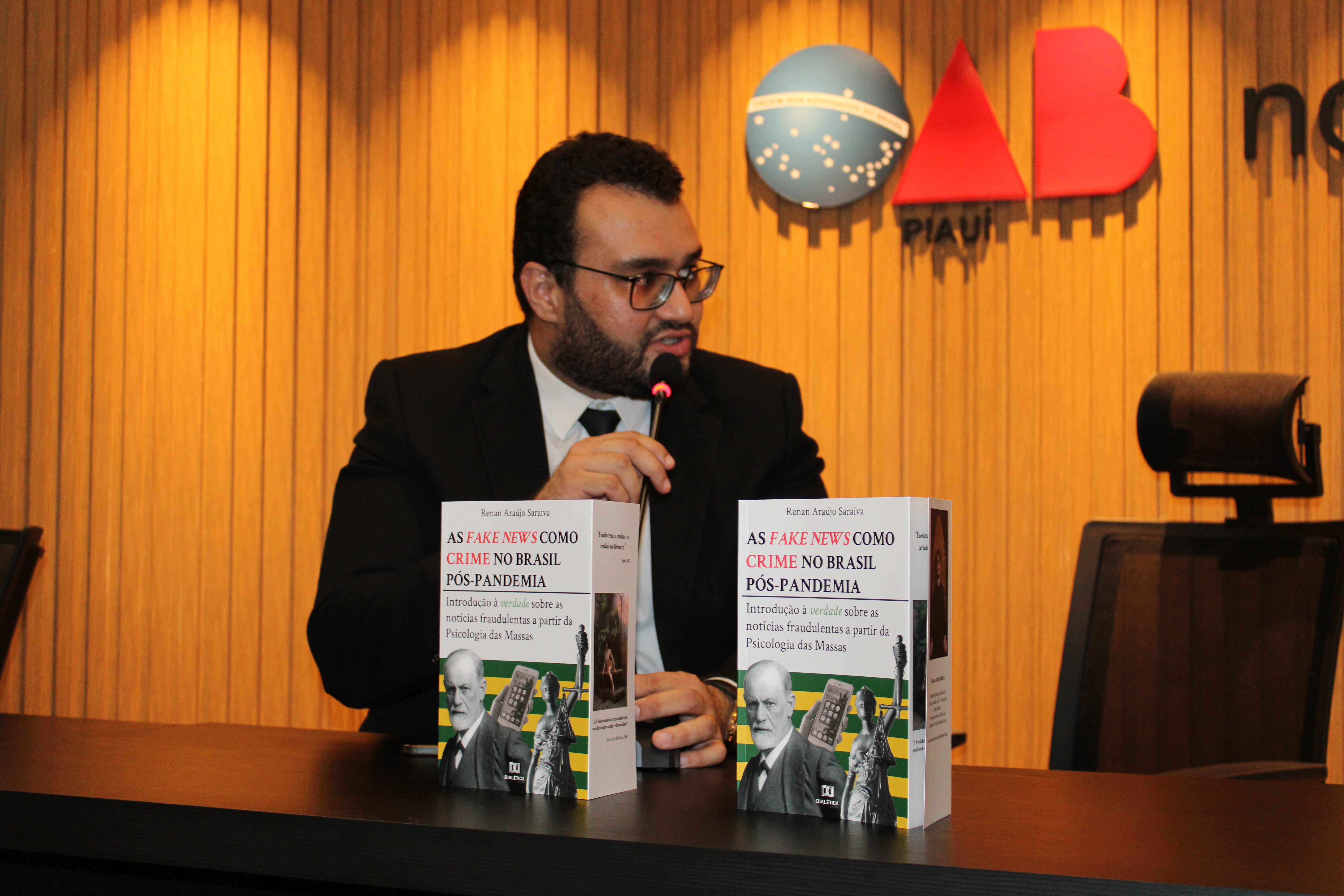 A Ordem dos Advogados do Brasil, Seccional Piauí (OAB-PI), por meio da Escola Superior da Advocacia (ESA-PI), realizou nesta segunda-feira (17/10), no auditório da ESA, o lançamento do livro “As fake news como crime no Brasil pós-pandemia”, de autoria do advogado Renan Araújo Saraiva.