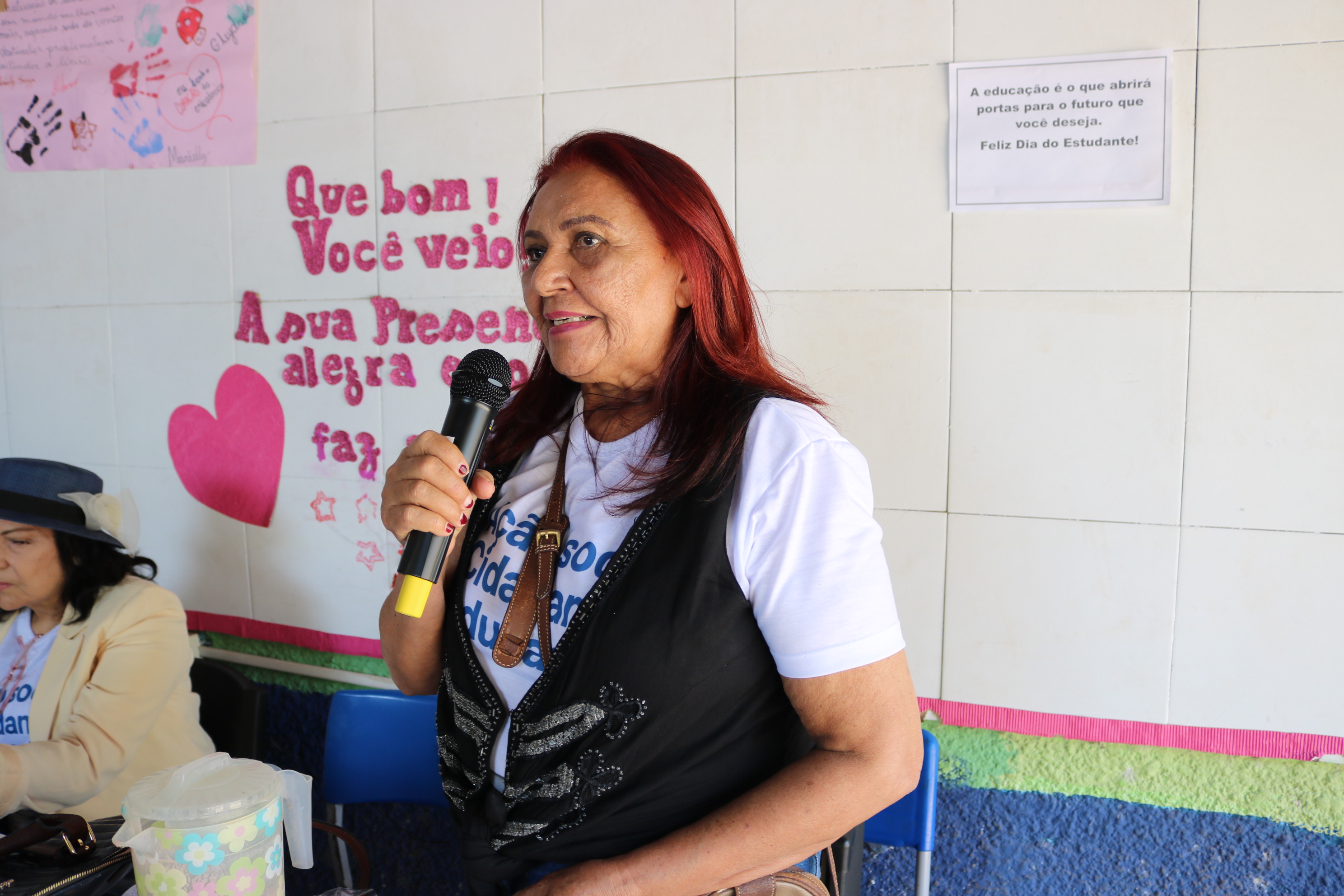 Maria do Carmo Bedard, membro da Comissão de Promoção da Cidadania, realizou a palestra e explicou sobre os pilares da cidadania, a importância da Educação, o desenvolvimento de habilidades socioemocionais e os planos para o futuro.