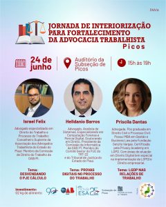 A Ordem dos Advogados do Brasil, Seccional Piauí, por meio da Comissão de Direito do Trabalho em parceria com a Associação dos Advogados Trabalhistas do Estado do Piauí (AATEPI), realizará a Jornada de Interiorização para Fortalecimento da Advocacia Trabalhista em quatro Subseções do estado.