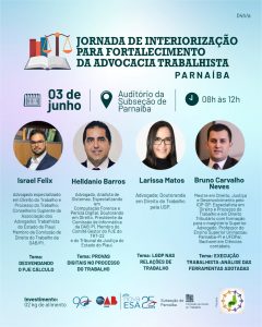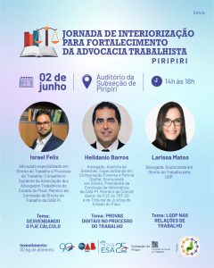 A presidente da a Associação dos Advogados Trabalhistas do Estado do Piauí (AATEPI), Noélia Sampaio, acrescenta que é necessário ampliar a qualificação da advocacia e essa é uma das principais metas da associação. “Em parceria com a OAB-PI, fizeram essa programação para levar aos advogados(as) do interior temas que são tendência no momento. A advocacia trabalhista tem sofrido profundas transformações desde a reforma em 2017. É fundamental que os profissionais adotem posturas e conhecimentos que lhe garantam melhor desempenho”, pontuou a advogada.