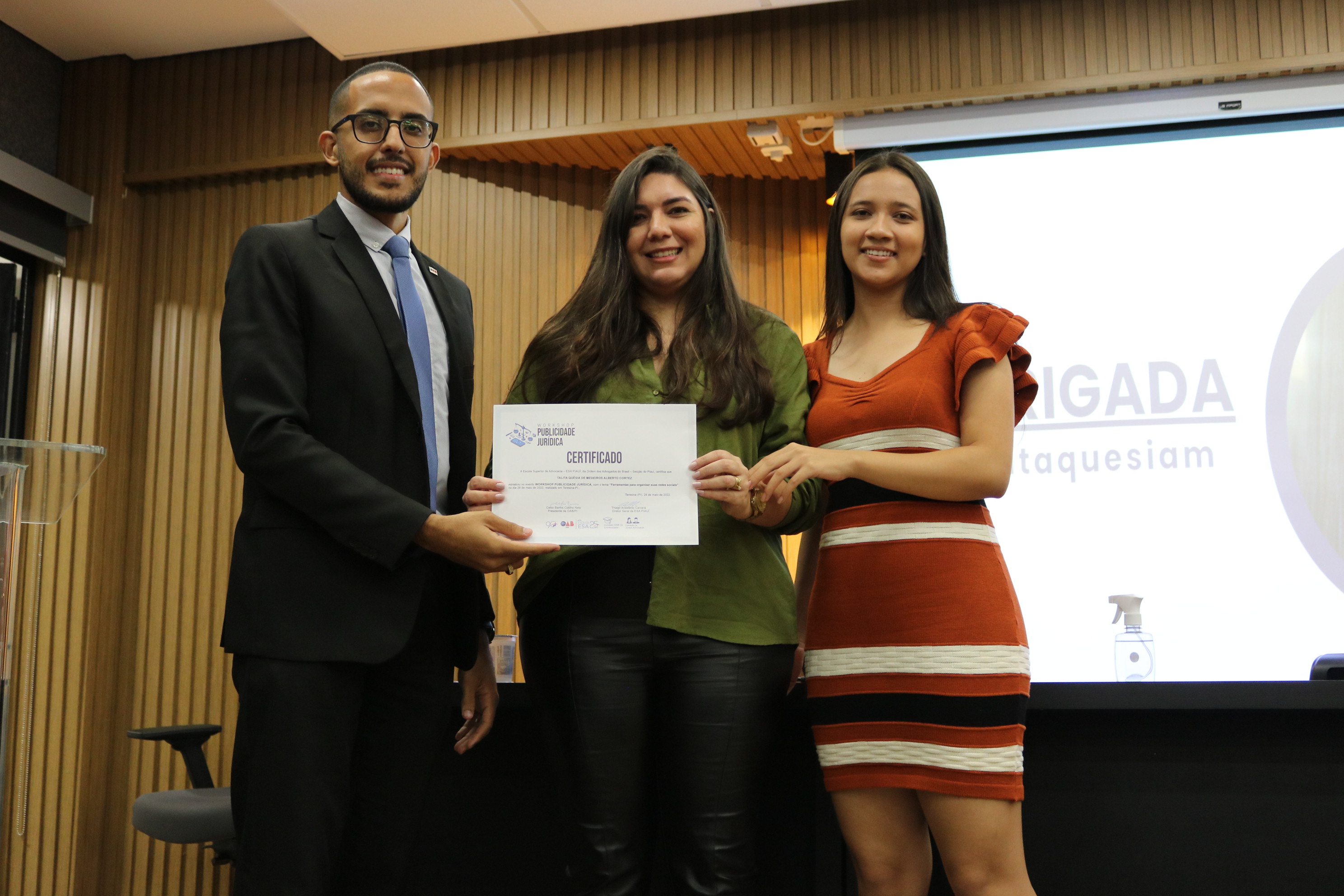 Yana Gonçalves, vice-presidente da Subseção de Picos; Rayna Sampaio, vice-presidente da Subseção de Parnaíba; Carlos Augusto Pereira; vice-presidente da Subseção de Floriano; Márcia Batista, vice-presidente da Subseção de Corrente; Evaliza Barbosa, vice-presidente da Subseção de Oeiras; Micaelle da Costa, vice-presidente da Subseção de Campo Maior e Érica Vieira, vice-presidente da Subseção de Piripiri.