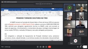 Integrantes da Comissão de Estudos sobre Porte de Armas da Ordem dos Advogados do Brasil, Seccional Piauí, reuniram-se na noite de quarta-feira (06/04). Na oportunidade, sob a condução da presidente da Comissão, Arielly Pacífico, foi deliberado sobre a realização do “Primeiro Curso Doutores do Tiro”.