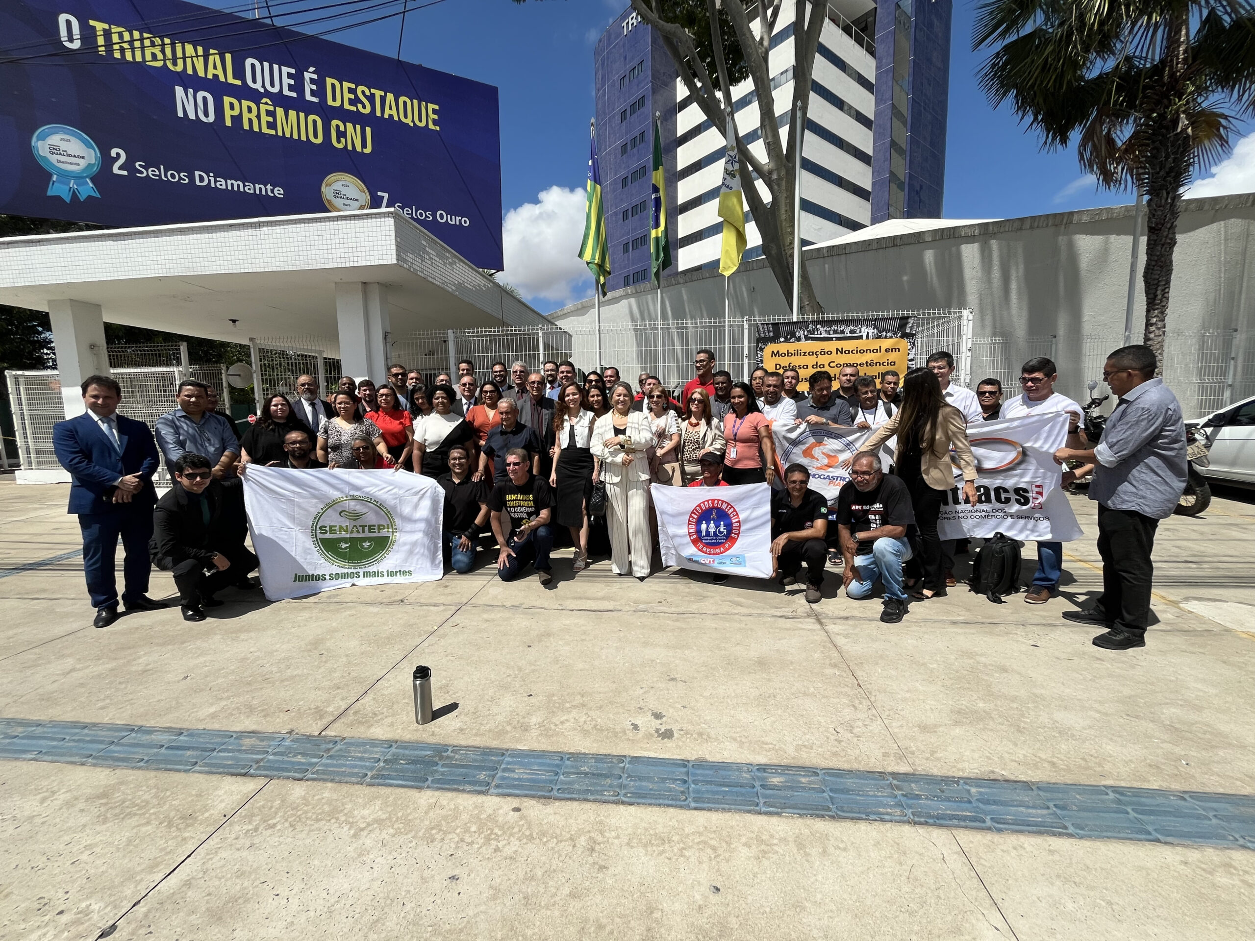 Nesta quarta-feira (07/05), a Ordem dos Advogados do Brasil, Seccional Piauí (OAB-PI), participou da Mobilização Nacional em Defesa da Competência da Justiça do Trabalho. O ato ocorreu em frente à sede do Tribunal Regional do Trabalho da 22ª Região (TRT-22), em Teresina, integrando uma série de manifestações simultâneas em todo o país.