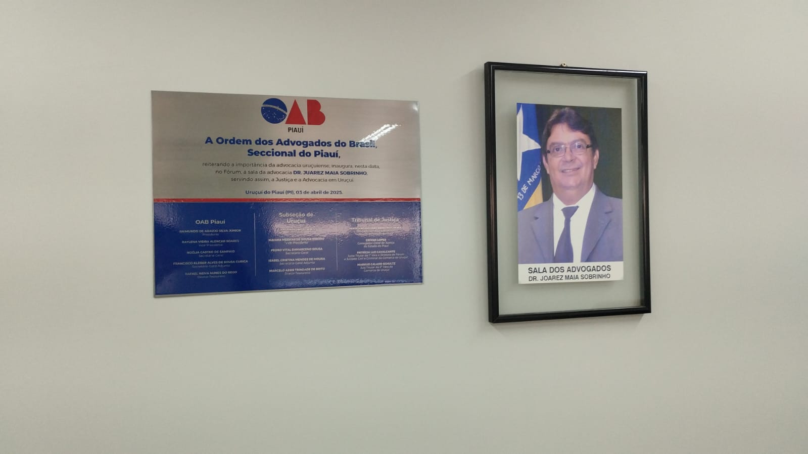 A Ordem dos Advogados do Brasil, Seccional Piauí (OAB-PI), inaugurou no dia 03 de abril mais um importante espaço voltado ao fortalecimento da advocacia no interior do estado. A nova Sala da Advocacia, instalada no Fórum Desembargador Ernesto Baptista, no município de Uruçuí, leva o nome do advogado Dr. Joarez Maia Sobrinho, em homenagem à sua destacada atuação profissional e contribuição à advocacia piauiense.