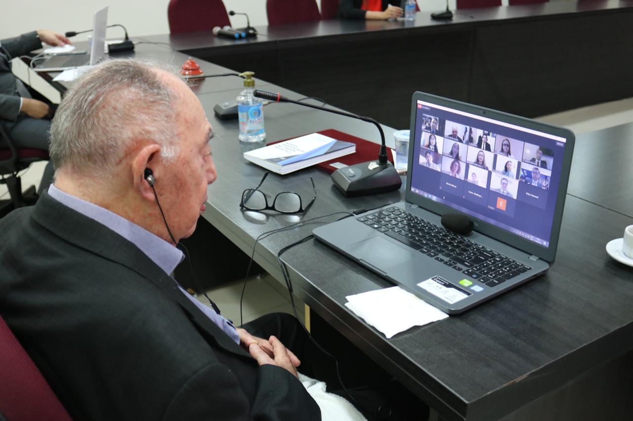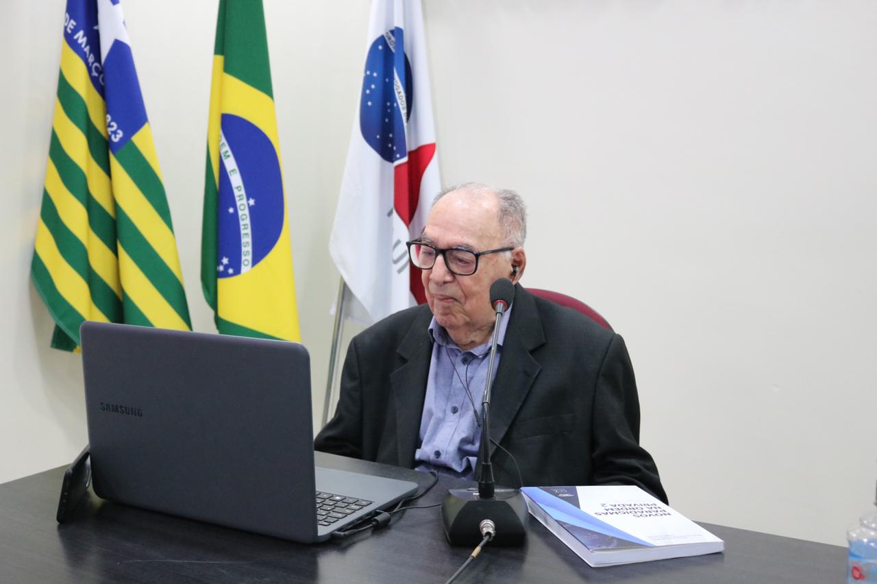 Em solenidade histórica, o Membro Honorário Vitalício da OAB Piauí, Celso Barros Coelho, foi homenageado com o lançamento do livro “Novos Paradigmas na Ordem Privada 2”, nesta terça-feira (11), dia em que celebra 99 anos idade. Conduzido pelo Presidente da Seccional, Celso Barros Coelho Neto, o momento aconteceu de forma híbrida, na Sala do Conselho da instituição e com transmissão ao vivo pelo canal oficial no Youtube.