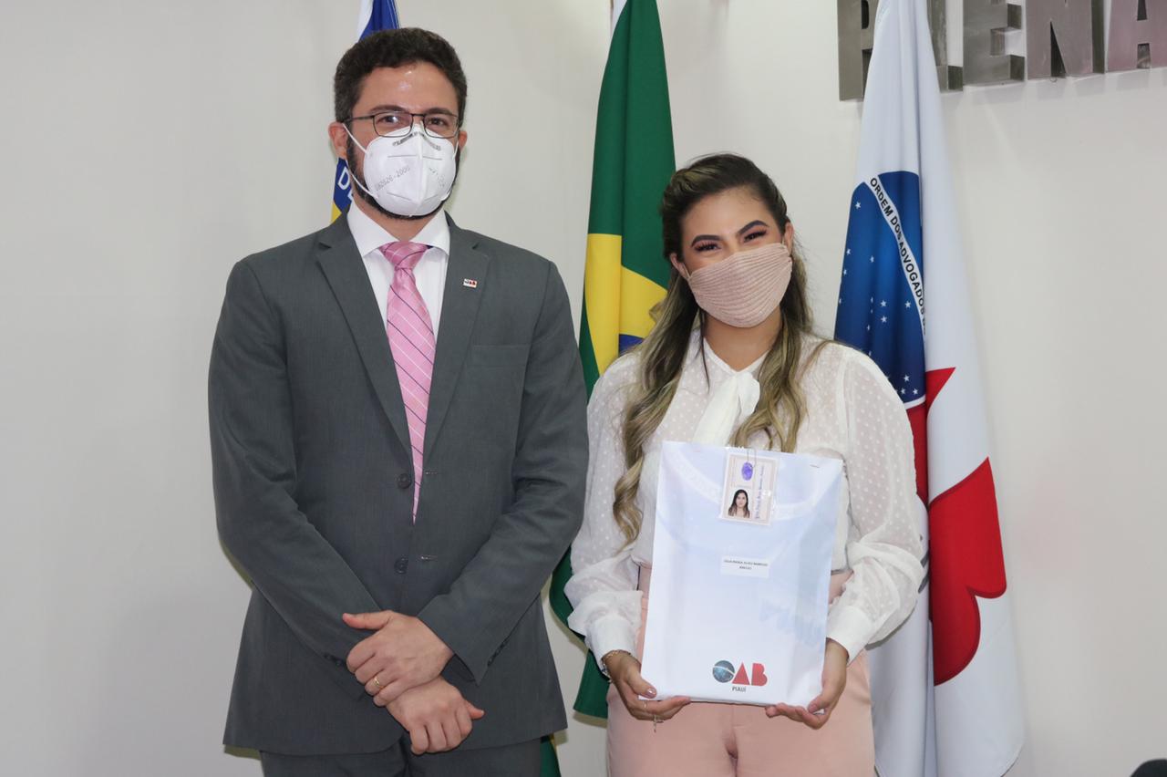 A Seccional Piauí realizou a entrega da carteira profissional nº 20 mil a mais nova Advogada piauiense Júlia Maria Araújo. O compromisso foi conduzido pelo Presidente da OAB Piauí, Celso Barros Coelho Neto, e foi realizada nesta quinta-feira (11), seguindo todos os protocolos de segurança sanitária impostos no combate à Covid-19.