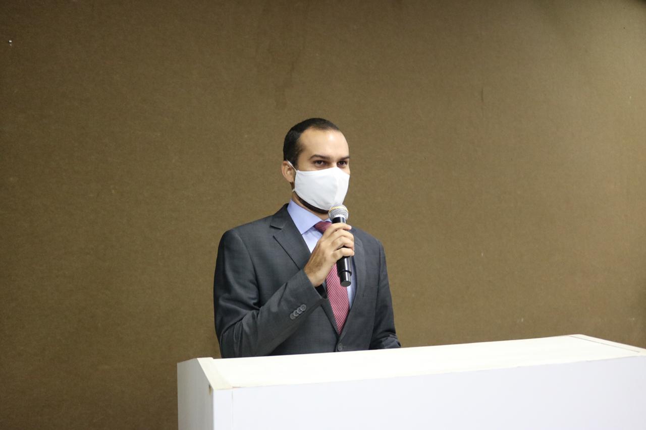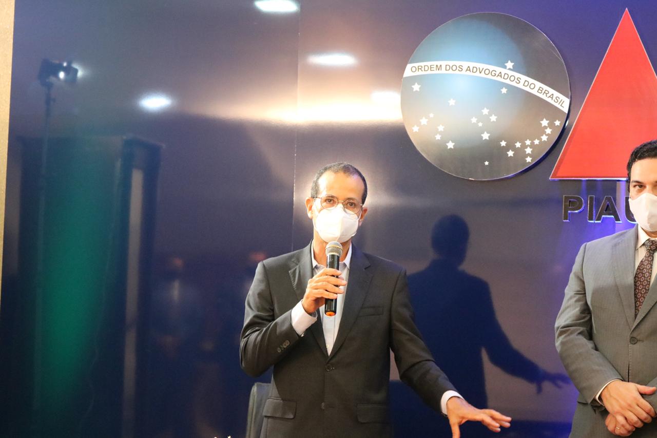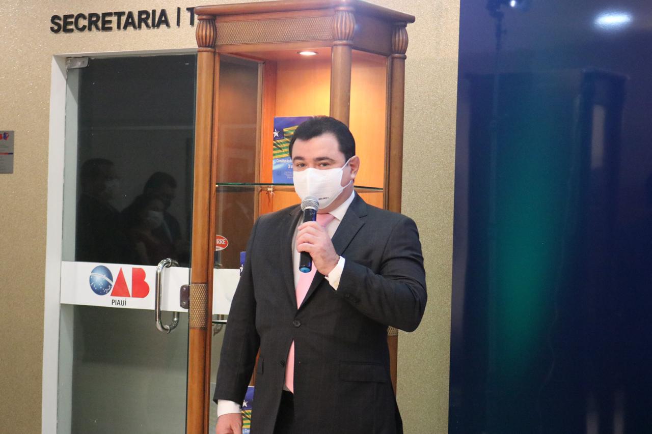 Secretário-Geral da OAB Piauí, Leonardo Airton, compondo mesa de honra durante a solenidade