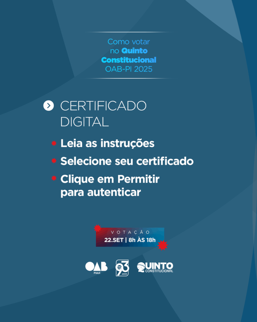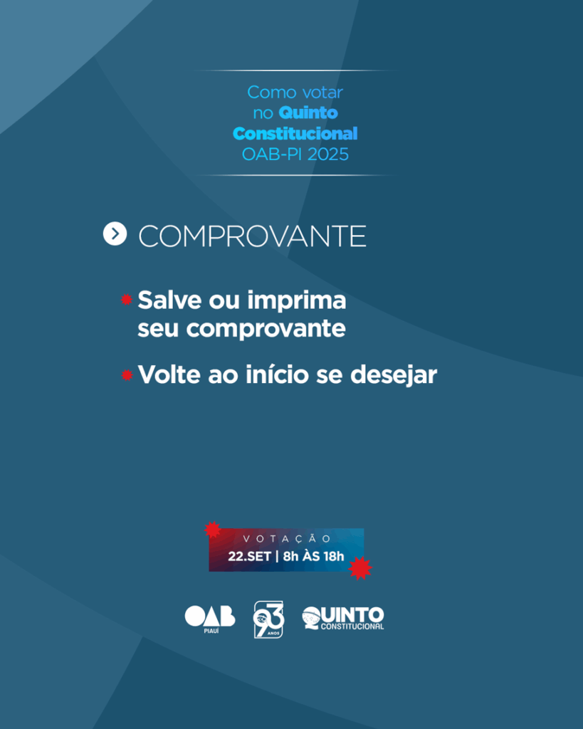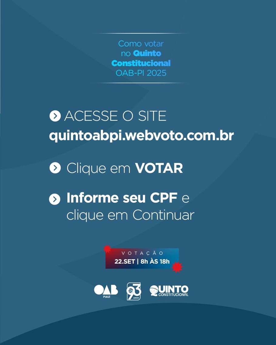 Mais do que um avanço tecnológico, a votação on-line representa um marco democrático para a advocacia piauiense. A participação da classe é essencial para fortalecer a representatividade e o processo de escolha do(a) futuro(a) desembargador(a) do Tribunal de Justiça do Piauí (TJ-PI).