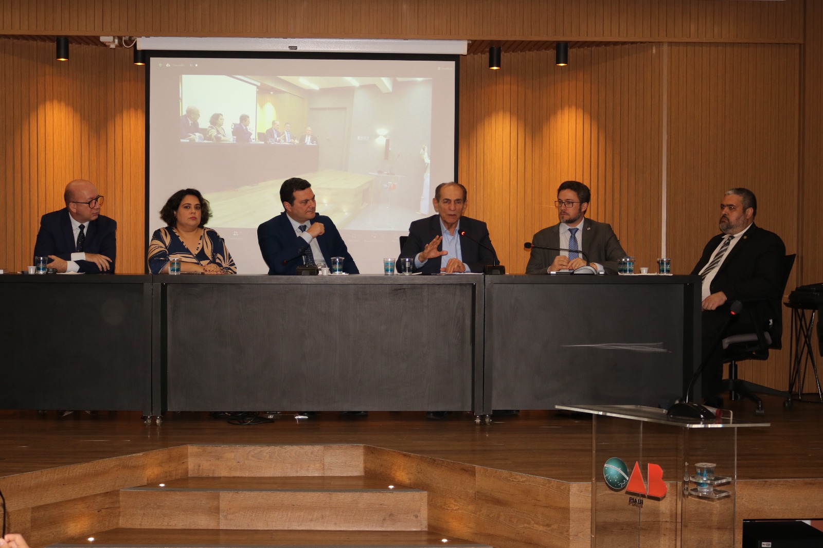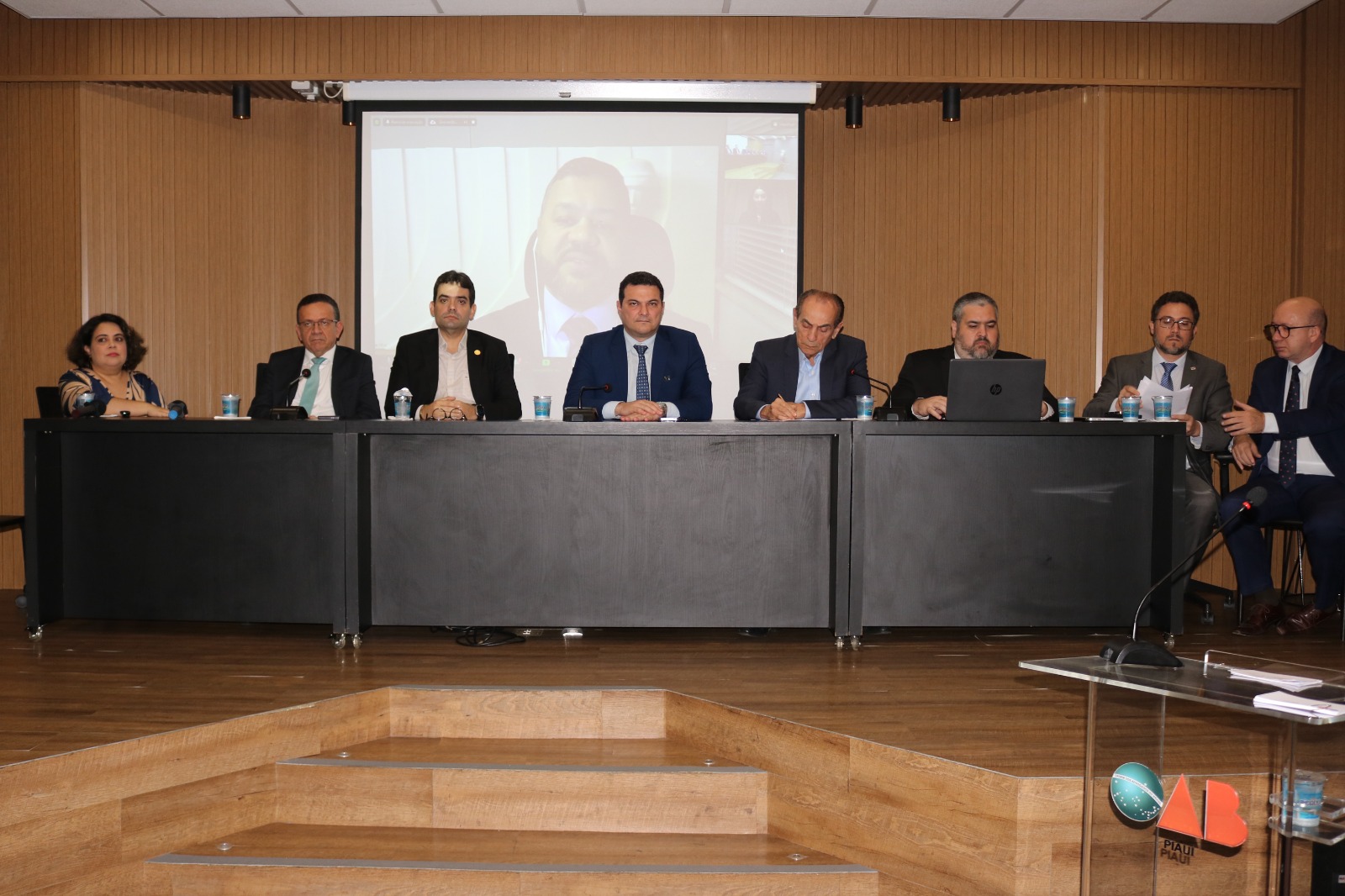 Advogado Celso Barros Coelho Neto, Presidente da OAB-PI, Advogado Marcus Nogueira, Diretor-Tesoureiro da OAB-PI, Advogado Einstein Sepulveda, Presidente da Comissão de Defesa e Valorização dos Honorários Advocatícios da OAB-PI, Advogado Thiago Brandim, Presidente da Comissão de Relação com o Poder Judiciário, Advogada Olivia Brandão, Presidente da Comissão de Processo Civil da OAB-PI, Advogado Albelar Prado, Presidente da Comissão de Prerrogativas dos Advogados e Advogadas da OAB-PI, Advogado Aurélio Lobão, professor da ESA-PI e os Advogados João Braga Nogueira e Thiego Monthiere.