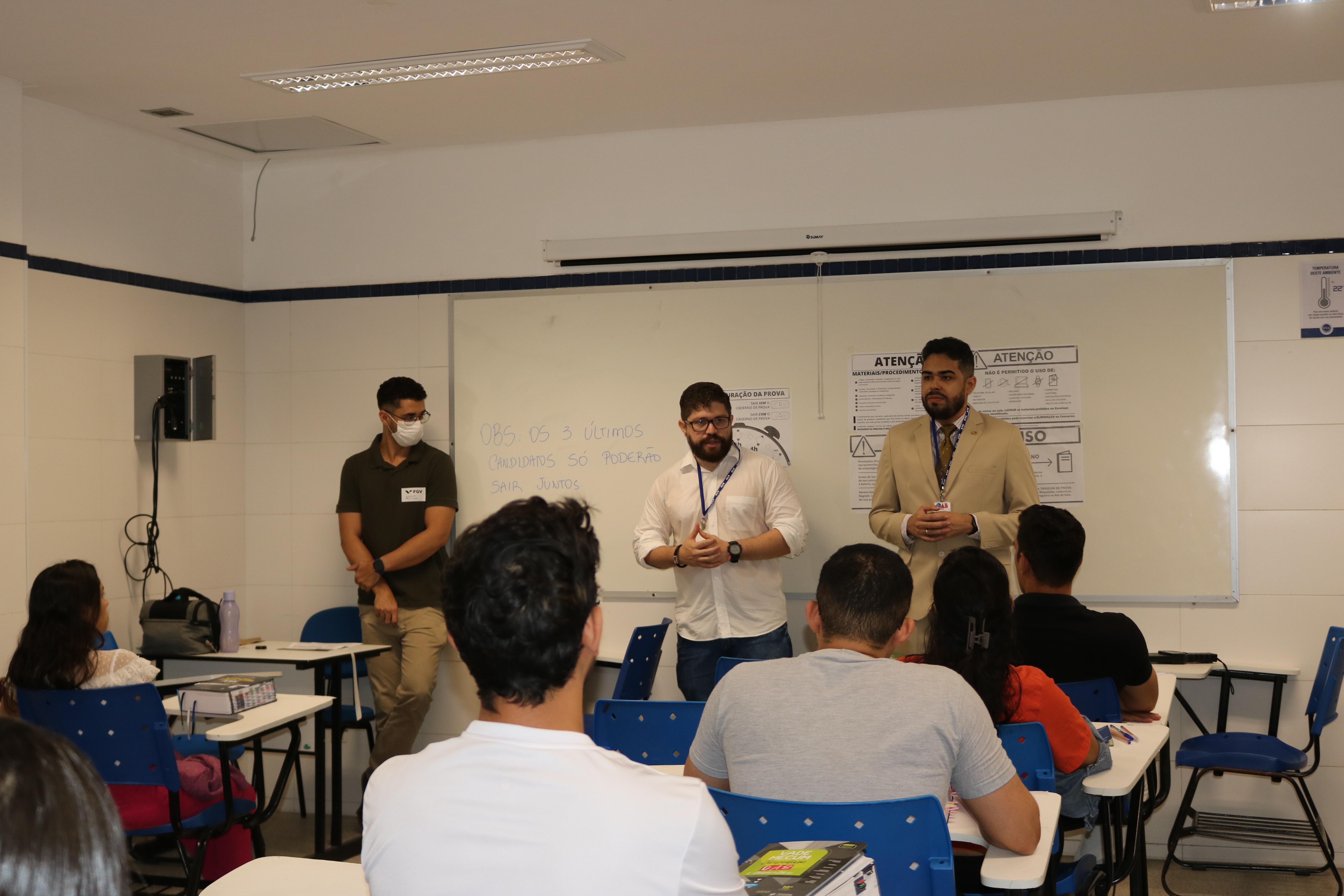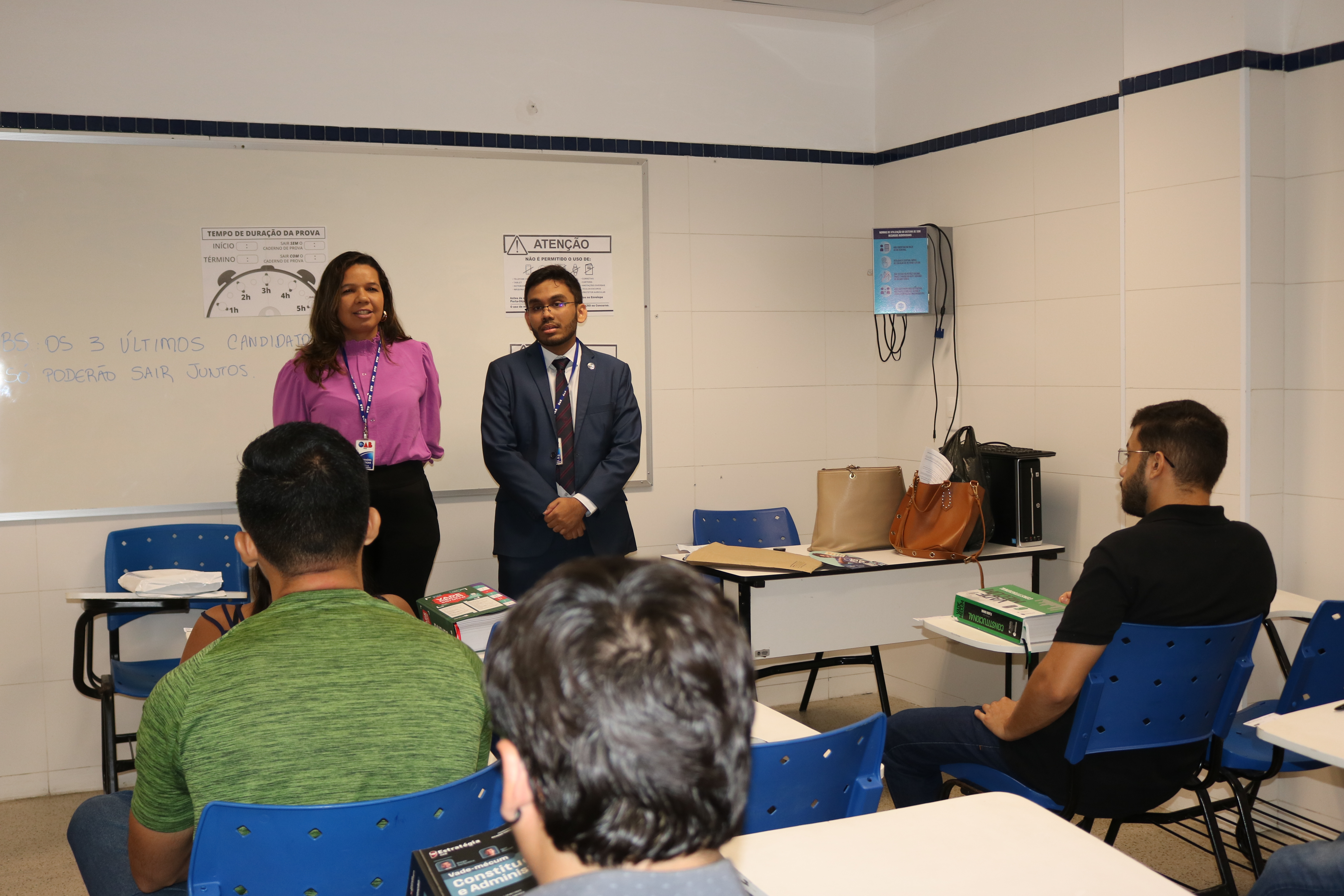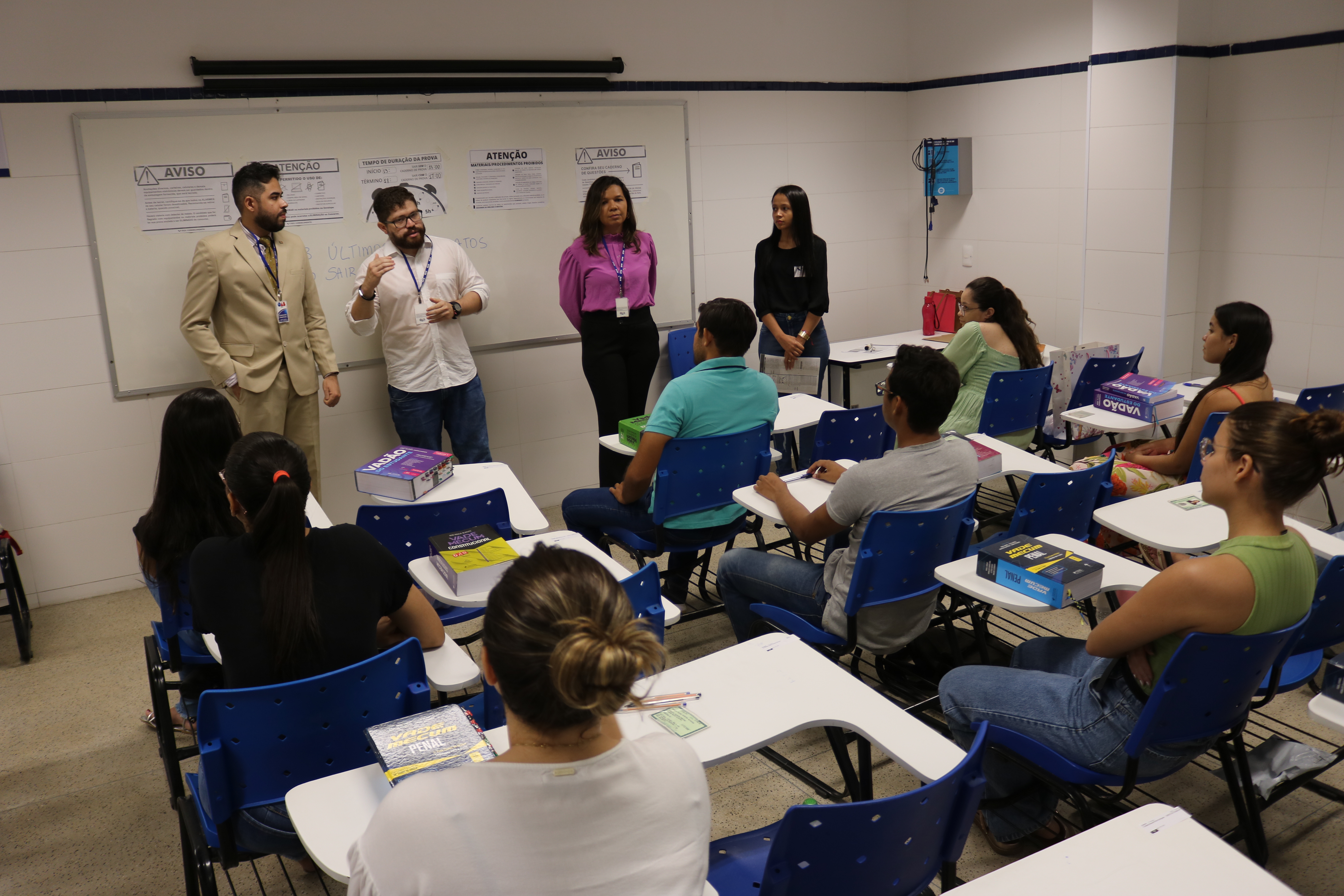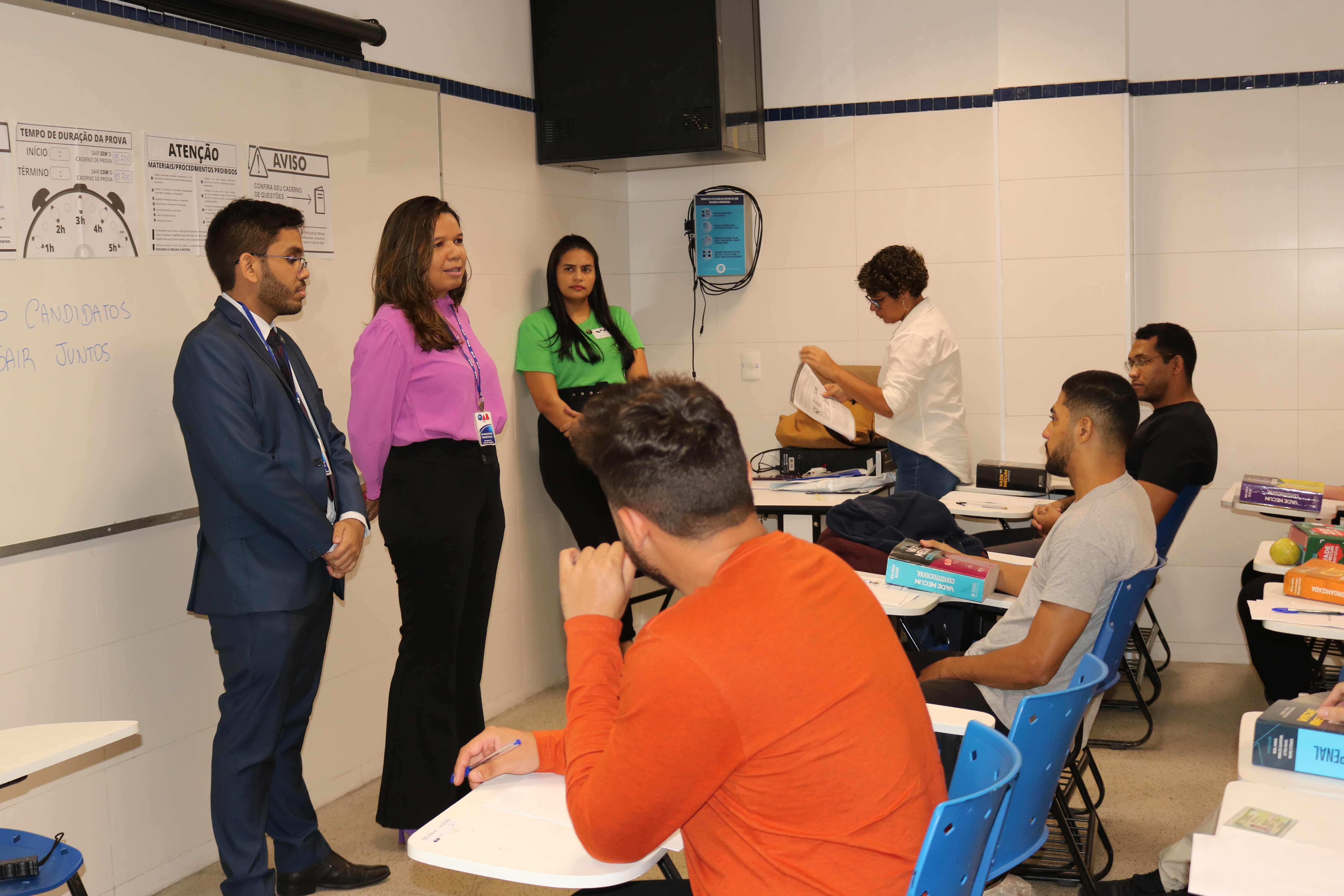 Antes do início do Exame, membros da Comissão de Estágio e Exame de Ordem da OAB-PI estiveram nas salas para conversar com os candidatos e candidatas.
