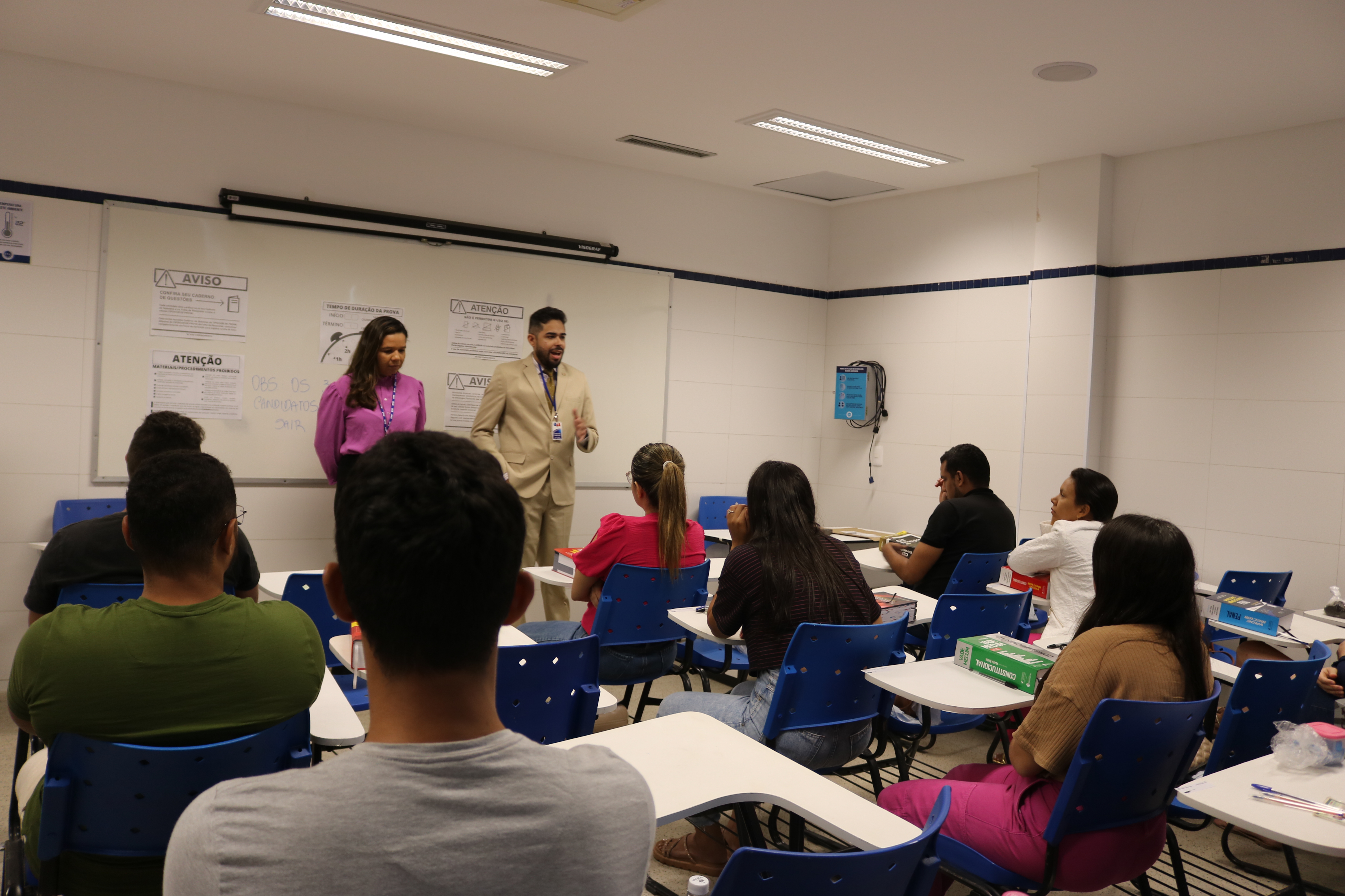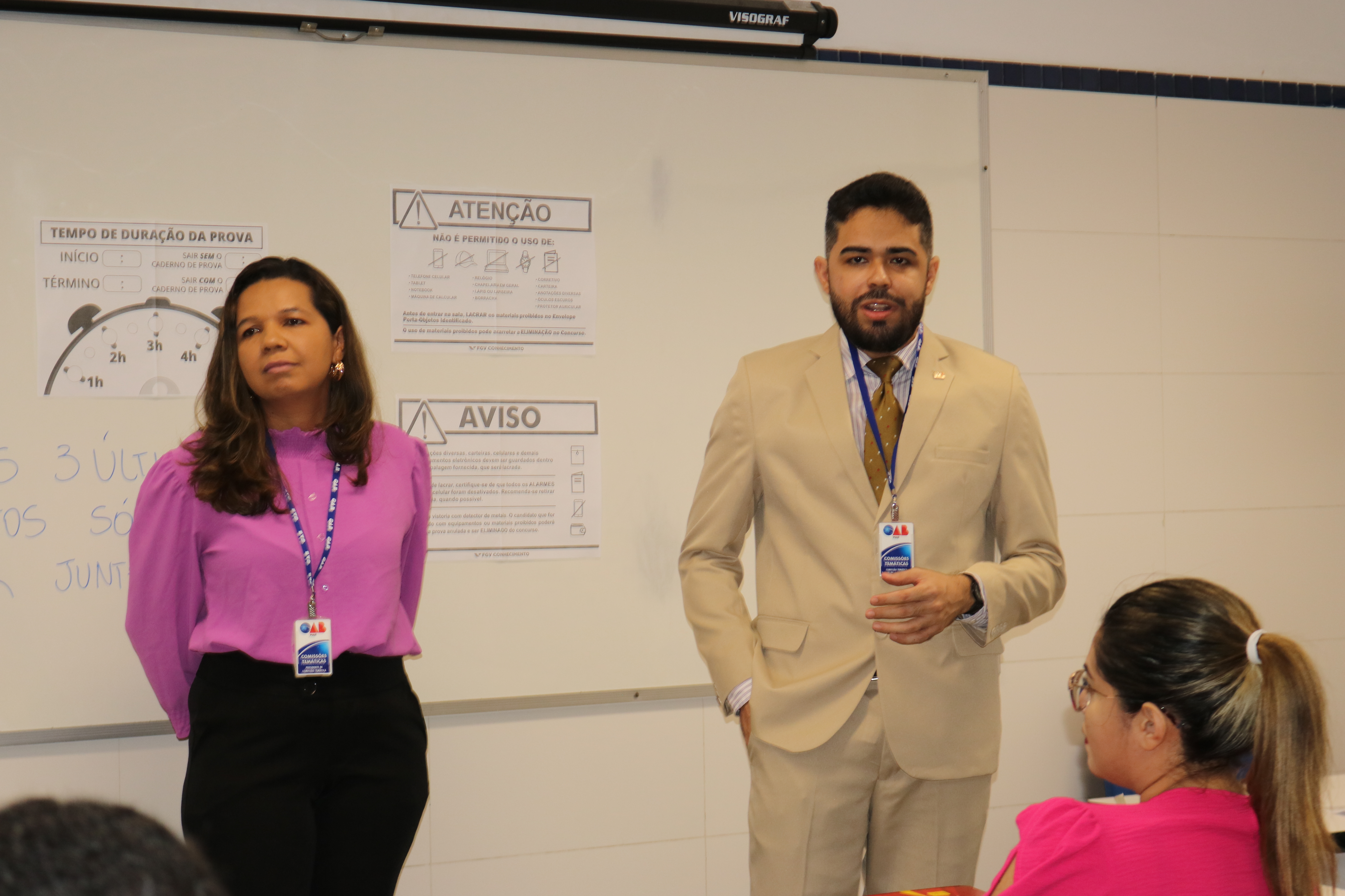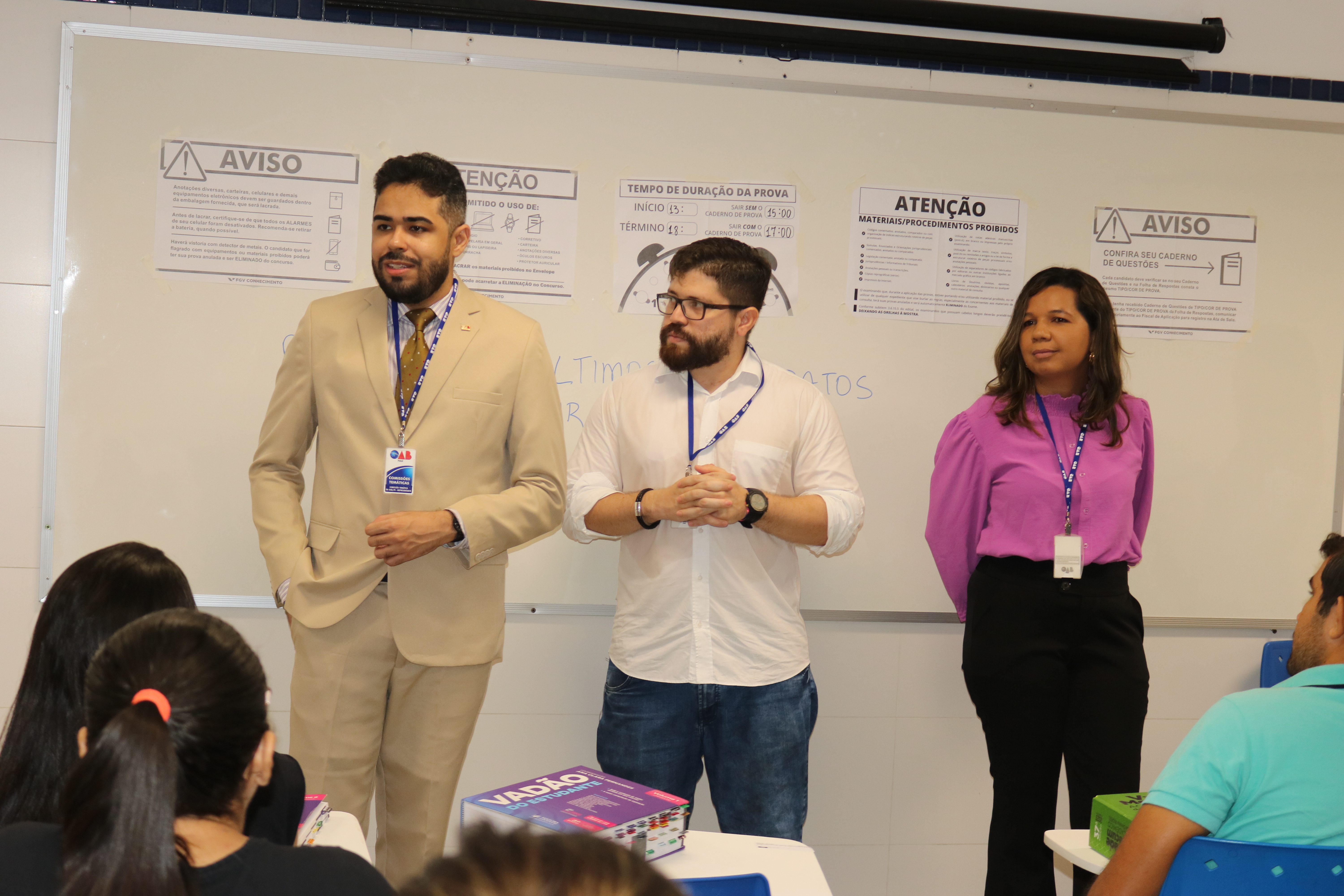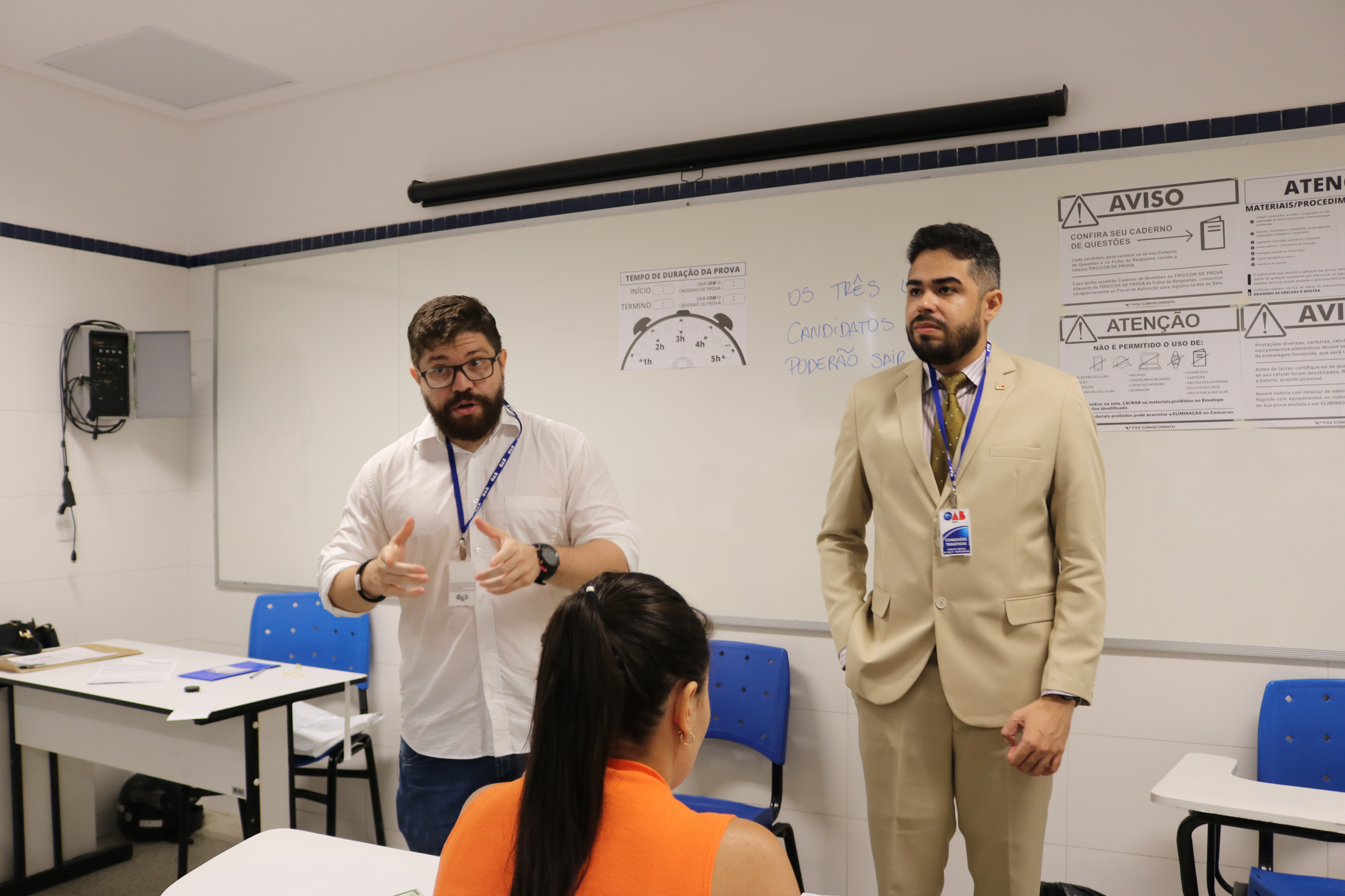 Antes do início do Exame, membros da Comissão de Estágio e Exame de Ordem da OAB-PI estiveram nas salas para conversar com os candidatos e candidatas.