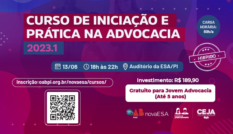 OAB/PI e ESA promovem curso para a advocacia piauiense com palestrantes nacionais; saiba como participar