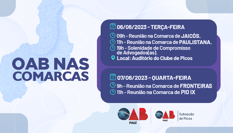 OAB-PI realiza o projeto “OAB nas Comarcas” e fará reuniões em Jaicós, Paulistana, Fronteiras e PIO IX