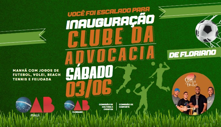 OAB-Piauí inaugura em Floriano o Clube da Advocacia no dia 3 de junho com música ao vivo, feijoada e campeonatos