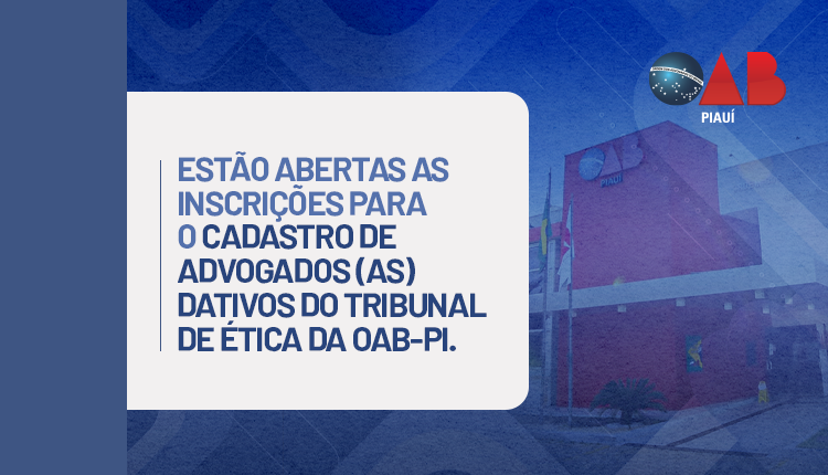 Estão abertas as inscrições para o Cadastro de Advogados(as) Dativos do Tribunal de Ética da OAB-PI