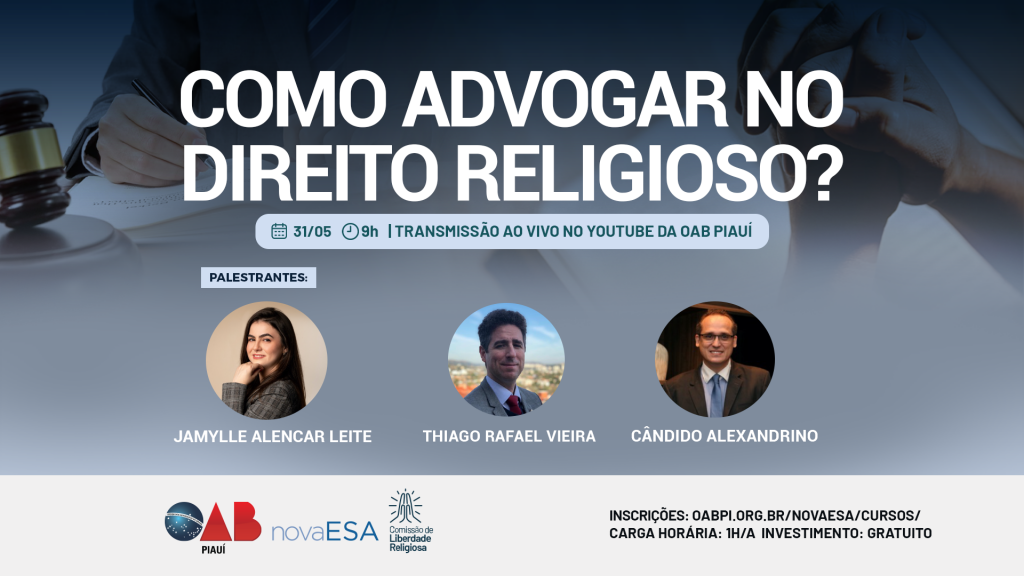 Comissão da OAB Piauí promove palestra on-line sobre “Como Advogar no Direito Religioso”; saiba como participar
