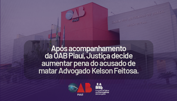 Após acompanhamento da OAB Piauí, Justiça decide aumentar pena do acusado de matar Advogado Kelson Feitosa
