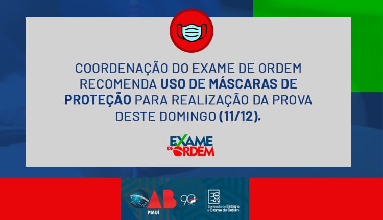 Coordenação do Exame de Ordem recomenda uso de máscaras de proteção para realização da prova deste domingo (11/12) no PI
