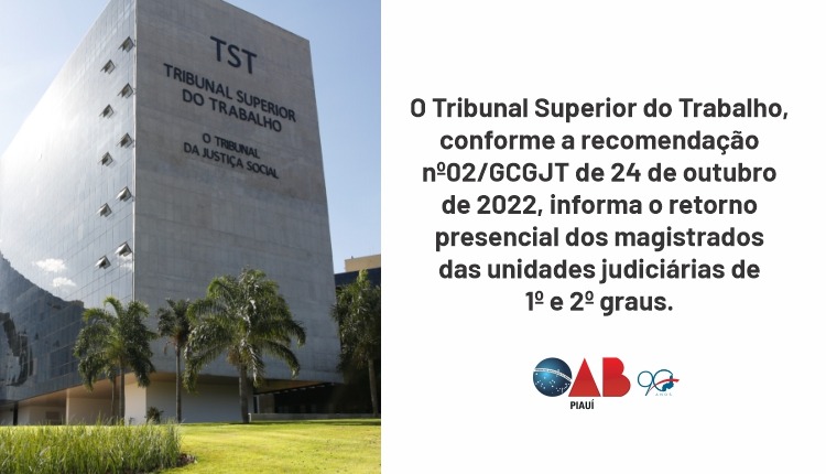 Tribunal Superior do Trabalho determina o retorno presencial de magistrados das unidades judiciárias de 1º e 2º graus