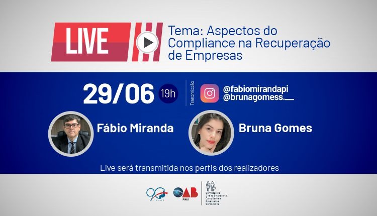 Comissão de Direito Empresarial realizará live nesta quarta-feira (29/06): “Aspectos do Compliance na Recuperação de Empresas”