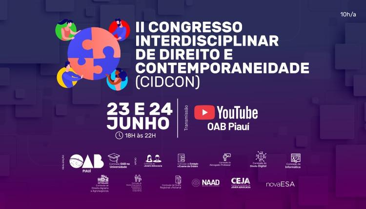 OAB Piauí promoverá II Congresso Interdisciplinar de Direito e Contemporaneidade nos dias 23 e 24 de junho