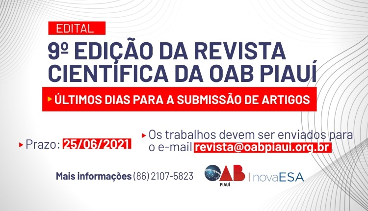 Últimos dias para submissão de artigos para a 9º Edição da Revista Científica da OAB Piauí