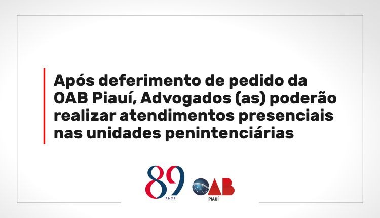 Após deferimento de pedido da OAB Piauí, Advogados (as) poderão realizar atendimentos presenciais nas unidades penitenciárias