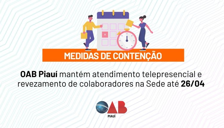 Medidas de contenção: OAB Piauí mantém atendimento telepresencial e revezamento de colaboradores na Sede até 26/04