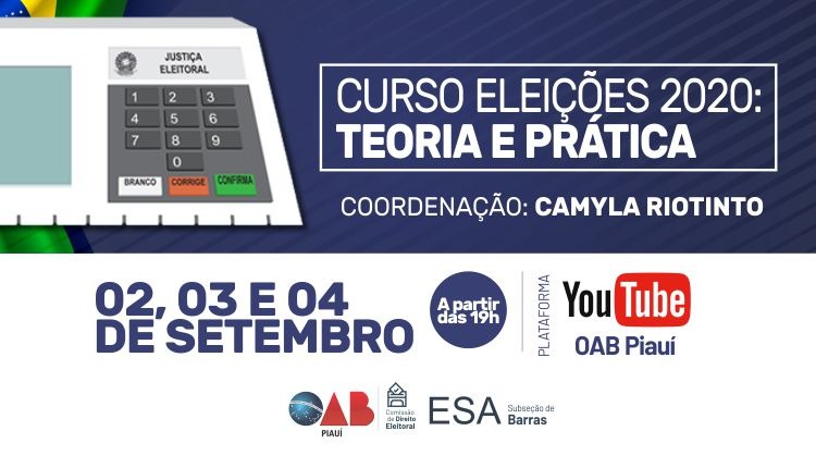 Inscrições abertas para o curso “Eleições 2020: teoria e prática” que acontecerá nos dias 02, 03 e 04 de setembro