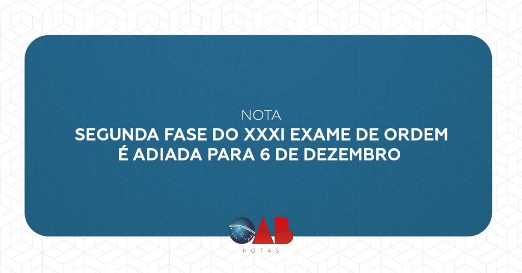 Segunda fase do XXXI Exame de Ordem é adiada para 6 de dezembro