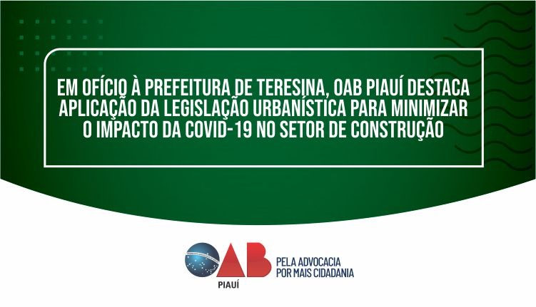 Em ofício à prefeitura de Teresina, OAB Piauí destaca a aplicação da legislação urbanística para minimizar o impacto da Covid-19 na Capital