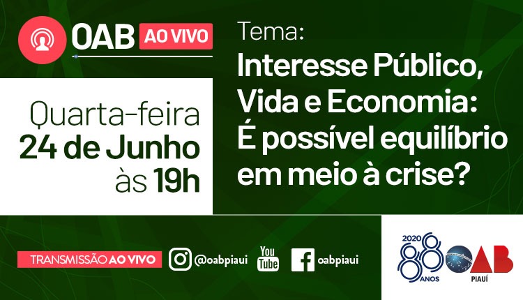 Live “Interesse Público, Vida e Economia: é possível equilíbrio em meio à crise?” acontecerá nesta quarta-feira (24)