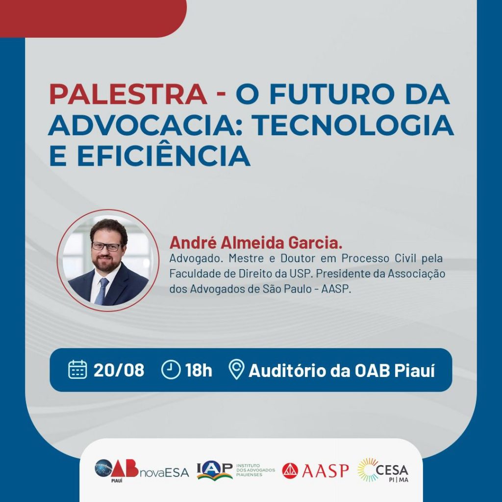 Presidente da AASP palestrará na sede da OAB Piauí nesta terça (20) sobre “O Futuro da Advocacia: Tecnologia e Eficiência”