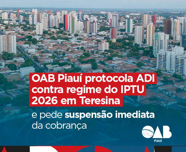 A Ordem dos Advogados do Brasil, Seccional Piauí (OAB/PI), protocolou nesta terça-feira (31/03) Ação Direta de Inconstitucionalidade (ADI) no Tribunal de Justiça do Estado, com pedido de medida cautelar, questionando o regime normativo que estruturou a cobrança do IPTU de 2026 no Município de Teresina.