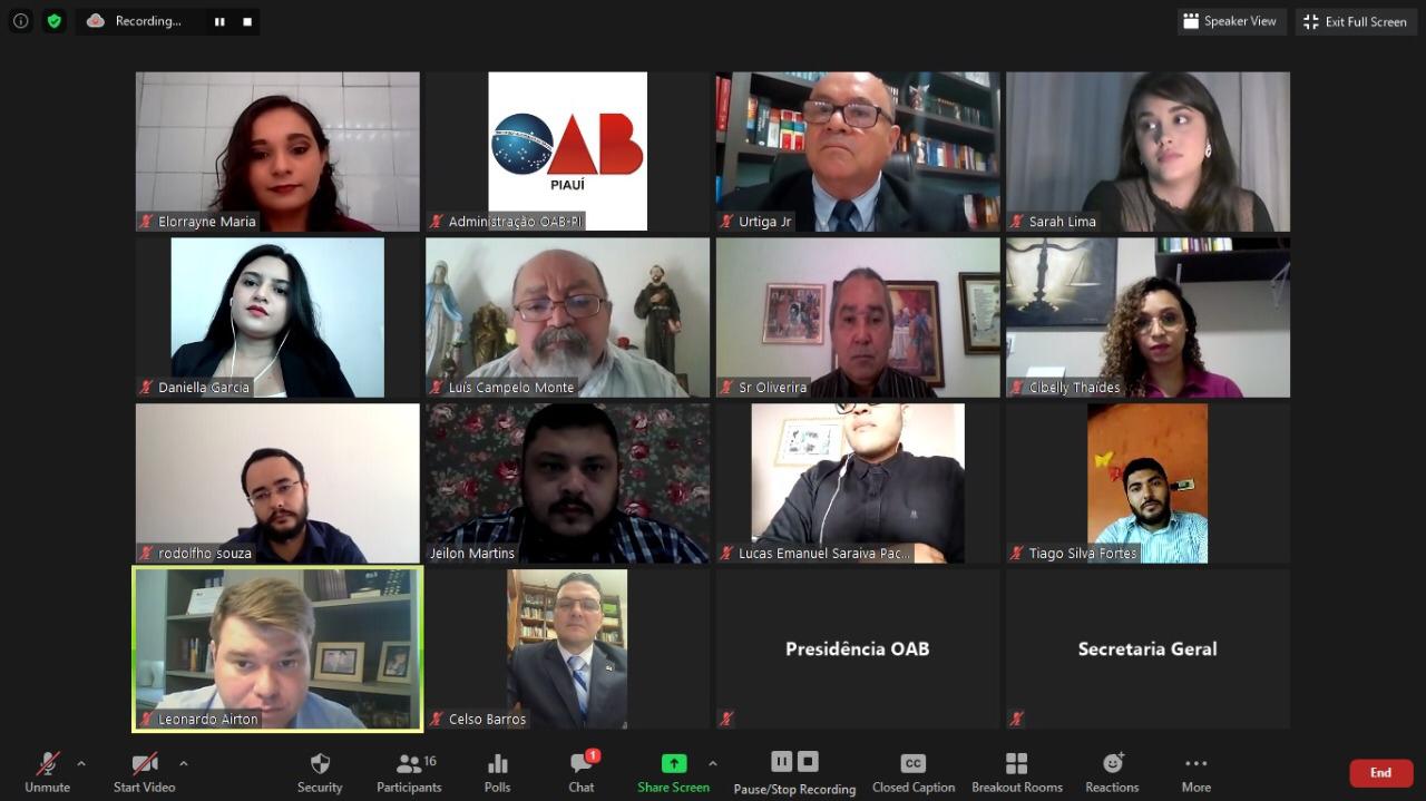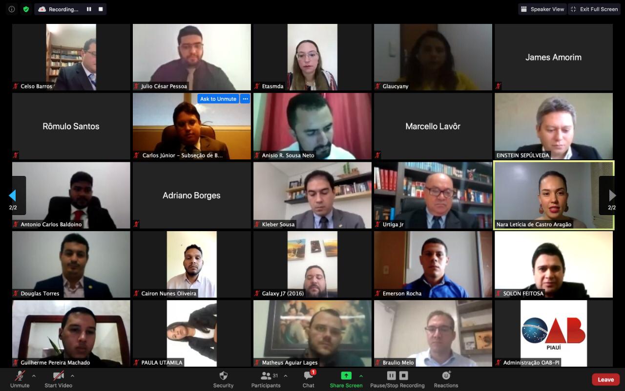 Os compromissos foram prestigiados pelos Presidentes das Subseções Kleber Curica (Picos), Douglas Franco (Bom Jesus), James Amorim (São Raimundo Nonato), Carlos Júnior (Barras) e a Vice-Presidente da Subseção da OAB de Parnaíba, Etasmda Maria Dias. A solenidade virtual contou ainda com a presença dos Conselheiros Seccionais Fernanda Amaral, Rômulo Santos, João Medeiros Júnior e Braulio Melo (Ex-Presidente da Subseção de Bom Jesus) e o Vice-Presidente da CAAPI, José Urtiga.