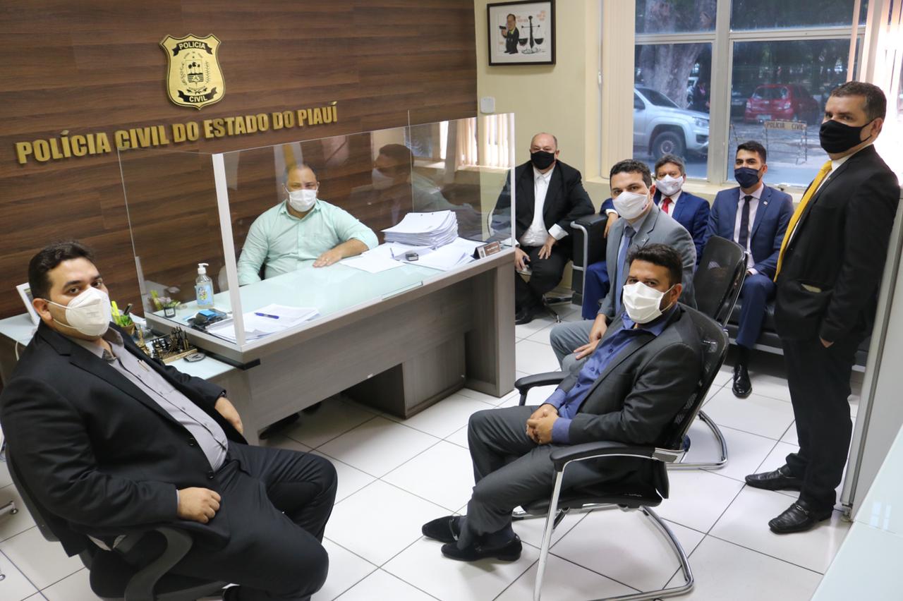 Em defesa das prerrogativas do Advogado Hartônio Bandeira, a OAB Piauí esteve na Delegacia Geral de Polícia Civil, na manhã desta quinta-feira (25), para representar, administrativa e criminalmente, o Agente de Polícia Civil da Cidade de Pedro II que atentou contra as prerrogativas do Advogado no pleno exercício da profissão.